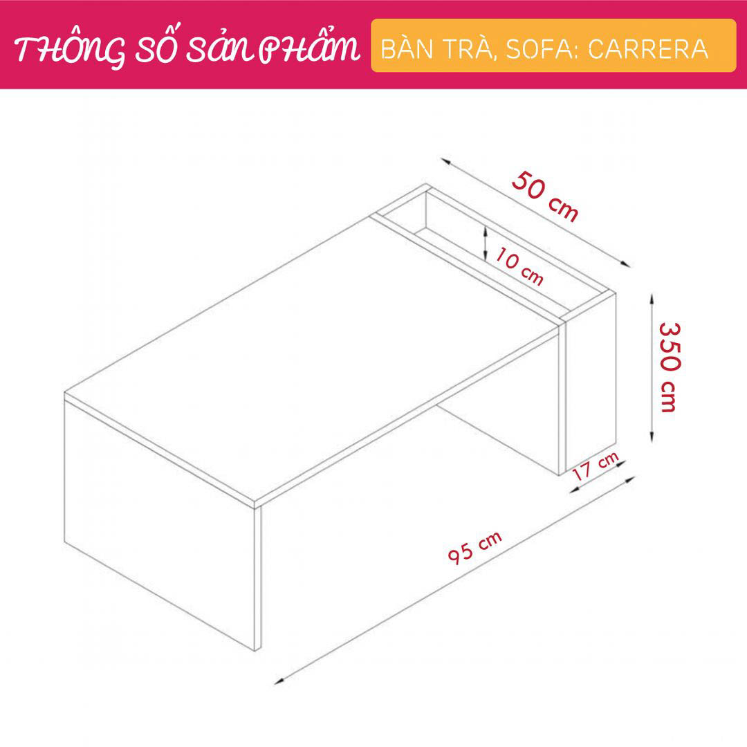 - Kích thước: Dài 95cm x Rộng 50cm x Cao 35cm
