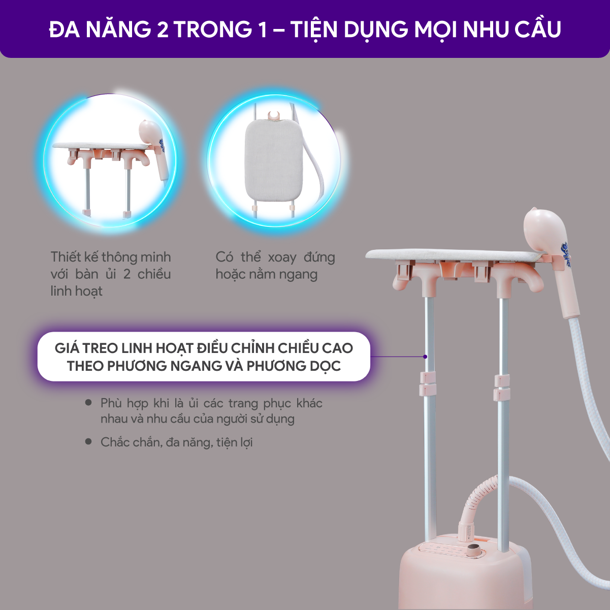 Mua tại Tiktok- - Tích hợp tấm ván ủi tiện lợi. - Được thiết kế để linh hoạt và tiện lợi. - Công nghệ ExtraHygiene loại bỏ đến 99,99% vi khuẩn trong 1 phút* - Ba mức