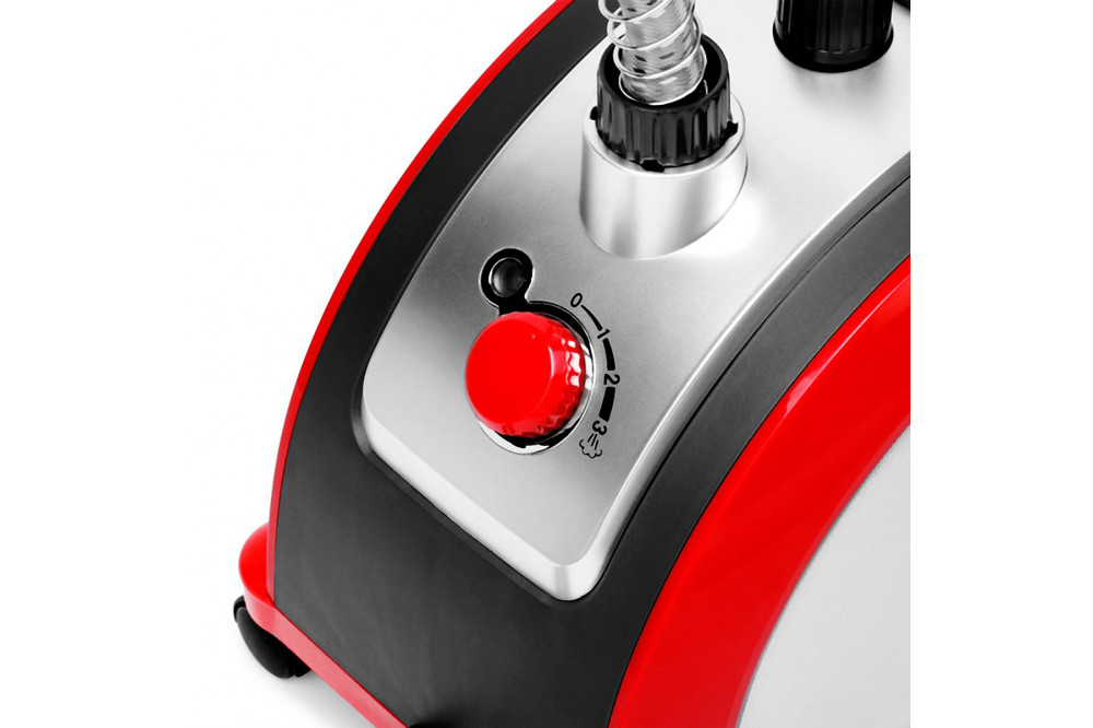 - Chân đế thiết kế có bánh xe giúp dễ dàng di chuyển bàn là đi đến vị trí bạn muốn sử dụng. Găng tay cách nhiệt đi kèm giúp bảo vệ tay bạn trong khi ủi bằng hơi nước. Công tắc điều chỉnh chế độ phun hơi
