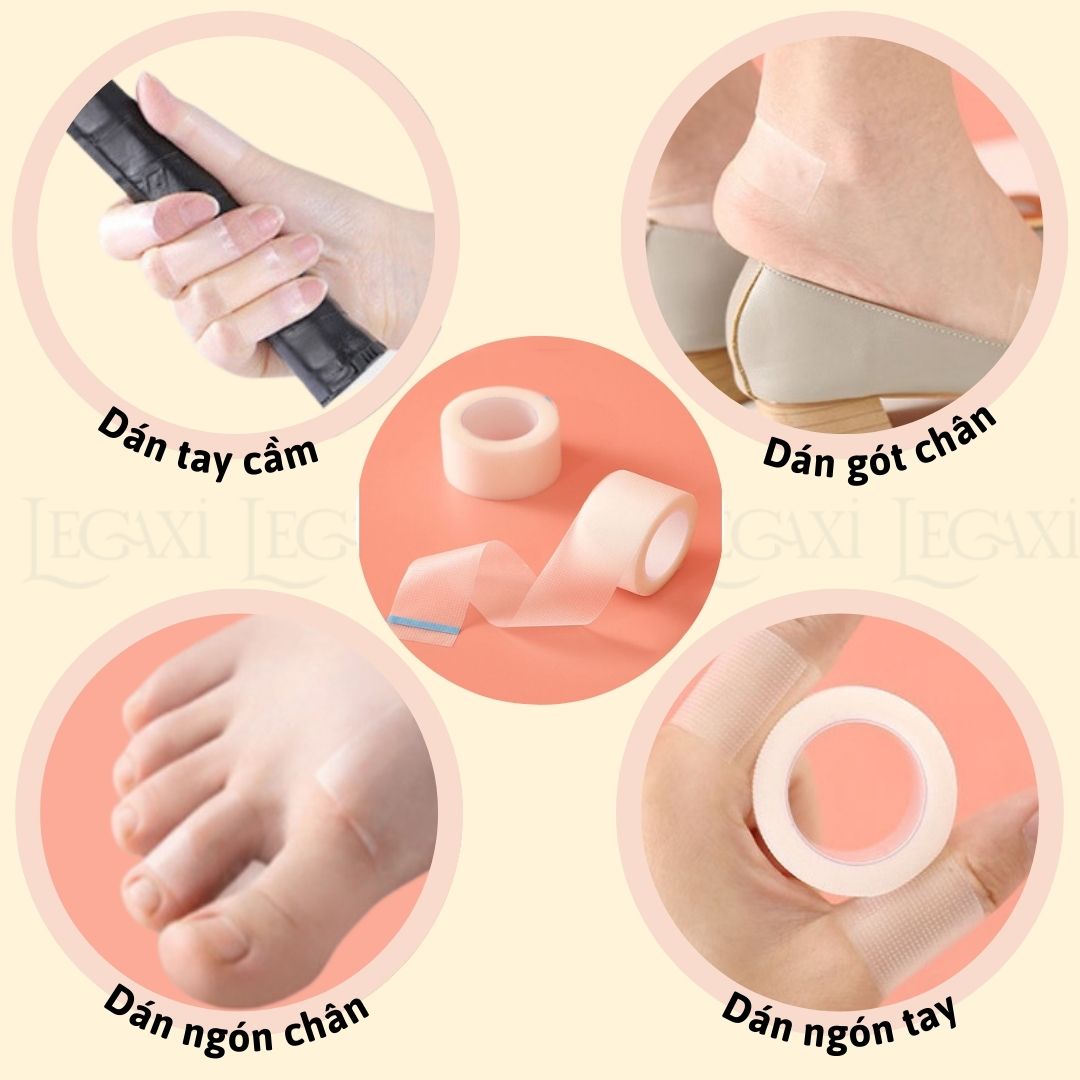- Kích thước: Rộng 2.5cm Dài 4.4m. Lưu ý: NSX ghi 5 mét nhưng shop đo chỉ có 4 và 4.4 mét mỗi loại, khách hàng nên cẩn trọng khi mua shop khác. ƯU ĐIỂM Thiết kế chống thấm nước, ôm sát vào da, ngăn bụi bẩn và nước xâm nhập, bảo vệ da. Chất liệu cotton, an toàn và không độc hại. Không chứa latex, không gây dị ứng, an toàn khi sử dụng. Sản phẩm thiết kế thông gió tốt, liên kết chắc chắn, rất thoải mái, cung cấp sự hỗ trợ và di động tốt hơn. CÔNG DỤNG Sản phẩm mềm dẻo nên dán ở khớp ngón tay ngón chân thì vận động dễ dàng, thoải mái. Giảm đau, chai sần khi cầm nắm các vật dụng nặng hoặc cầm bút trong thời gian dài. Cải thiện hiệu suất thể thao: chất liệu mềm dẻo dễ dàng uốn cong theo cơ giúp cơ thể di chuyển thoải mái và giảm chấn thương. Ví dụ: quấn ngón tay khi chơi quần vợt tennis. Có thể dán ở những góc nhà, đồ vật có cạnh sắc bén để giảm lực tác động và tổn thương khi va chạm, tiếp xúc với da. HƯỚNG DẪN SỬ DỤNG Bước 1: Vệ sinh, lau khô vùng cần dán. Bước 2: Ước tính kích thước cần sử dụng, dùng tay xé hoặc dùng kéo cắt. Bước 3: Dán vào vị trí cần sử dụng. Lưu ý: Khách có thể dán trực tiếp lên giày để kéo dài thời gian sử dụng nhưng cần chú ý về vấn đề vệ sinh giày.