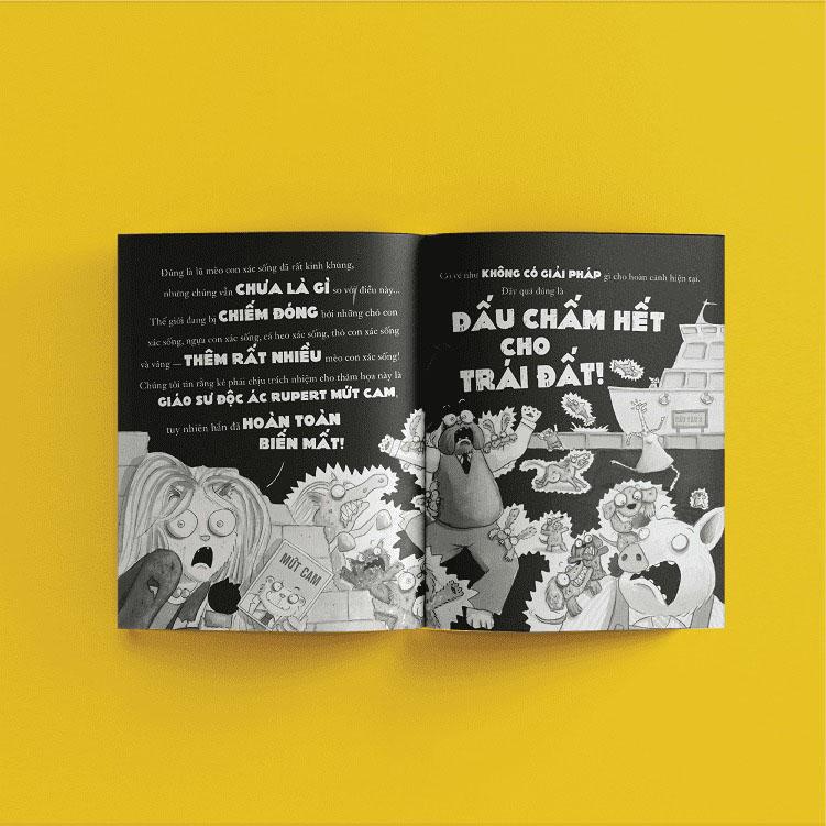 Băng Đảng Quái Kiệt - Tập 5 Băng đảng quái kiệt sẽ phải “mượn đỡ” một chiếc tên lửa để bay lên Mặt Trăng và phá hủy cỗ máy Tia-Diệt-Dễ-Thương do Tiến sĩ Mứt Cam độc ác chế tạo ra hòng khiến Trái Đất diệt vong. Vấn đề là quý anh Sói bị bỏ lại ngoài không gian cùng với lượng ôxy chỉ đủ cho 10 phút. Hãy cùng khám phá bước tiến vĩ đại của Băng đảng quái kiệt trong tập 5 của series truyện đầy hài hước và kịch tính! “Băng đảng quái kiệt” không chỉ được các bạn nhỏ yêu thích như một bộ sách đọc vì niềm vui (read for fun), mà còn được nhiều cảm tình từ các phụ huynh và thầy cô giáo (tất cả các tập truyện đều nhận được đánh giá từ 4 sao trở lên trên trang Goodreads), phần đa là vì những lợi ích quan trọng mà bộ sách đem lại cho sự phát triển ngôn ngữ, tư duy của trẻ. MỞ RỘNG VỐN TỪ Hiếm có một bộ truyện nào chú trọng đến việc phát triển kho từ vựng dồi dào cho trẻ em như “Băng đảng quái kiệt”. Nếu đọc lướt qua, ta có thể chỉ thấy đây là một bộ truyện có lời thoại siêu hài hước, ngôn ngữ đúng kiểu của trẻ con nói với nhau. Nhưng nếu đọc kỹ hơn, ta sẽ tìm thấy một lượng lớn từ vựng hay được lồng ghép khéo léo trong những đoạn hội thoại vui nhộn. Điều này giúp các bạn nhỏ mới tập đọc, hoặc mới bắt đầu chuyển từ sách tranh (picture book) sang sách phân chương (chapter-book) không cảm thấy áp lực khi đọc. Tiếng cười, sự hài hước khiến trẻ không cảm thấy đang “học” từ mới thông qua việc đọc bộ truyện, nhưng thực ra trẻ đang “ngầm” tiếp thu và trau dồi kho từ vựng của m.ình. Chưa kể, bộ sách này có thể “gây nghiện” và khiến các bạn nhỏ muốn đọc đi đọc lại nhiều lần. Theo nhà tâm lý học trẻ em người Mỹ Joanne Cummings: “Nghiên cứu đã chứng minh trẻ học được nhiều từ vựng hơn thông qua việc đọc một cuốn sách nhiều lần.” Cụ thể, đọc một cuốn sách nhiều lần giúp trẻ tăng cường đến 12% vốn từ. TƯ DUY PHẢN BIỆN “Băng đảng quái kiệt” tạo ra một mâu thuẫn truyện rất rõ ràng, cụ thể, trẻ em nào cũng hiểu được, và cũng không kém phần thú vị: Một nhóm người luôn bị coi là kẻ xấu xa muốn trở thành người tốt. Ai mà chẳng tò mò kết cục liệu họ có trở thành người tốt, hay họ thực sự là những gã tồi tệ? Bộ truyện kích thích trẻ tư duy, phát triển những suy nghĩ độc lập, quan điểm, chính kiến của bản thân về việc thế nào là người tốt/người xấu; khơi gợi nhiều câu hỏi mở để trẻ rèn luyện tư duy phản biện như liệu có nên đánh giá người khác qua vẻ bề ngoài, thế nào được xem là một người bạn tốt… “Băng đảng quái kiệt” là một bộ truyện có chiều sâu, có nhiều lớp nghĩa mà tùy thuộc vào năng lực nhận thức ở mỗi độ tuổi mà trẻ sẽ có cảm nhận riêng. Trẻ nhỏ có thể thấy thích thú với những trò đùa, tranh vẽ giàu biểu cảm trong sách; trẻ lớn hơn có thể quan tâm tới những mối quan hệ giữa các nhân vật trong sách vì chúng gần với cuộc sống của trẻ. Tác giả Aaron Blabey từng chia sẻ rằng: Mối quan hệ phức tạp nhưng rất “đời” giữa Sói và Rắn trong truyện khiến các con của anh thích thú, vì chúng cảm thấy được đối xử như những “người lớn tí hon”. NIỀM YÊU THÍCH ĐỌC Cuối cùng, lý do lớn nhất mà series “Băng đảng quái kiệt” thành công và được yêu mến đến vậy trên toàn cầu là vì nó khơi dậy được niềm yêu thích đọc của trẻ em! Với khát khao sáng tác một bộ sách có thể khiến các con m.ình hào hứng đọc như lúc chúng xem phim hay chơi trò chơi, Aaron Blabey đã tạo ra “Băng đảng quái kiệt” khiến tất cả trẻ em đều cảm thấy vui vẻ khi đọc chúng. Nếu bạn đọc các review trên Amazon hay Goodreads, sẽ thấy hầu hết độc giả đều công nhận rằng series “Băng đảng quái kiệt” khiến các bạn nhỏ BẬT CƯỜI, đòi ĐỌC ĐI ĐỌC LẠI và trẻ YÊU THÍCH bộ sách rất nhiều! Có nhiều yếu tố khiến trẻ con yêu thích bộ sách này đến vậy, nhưng có lẽ YẾU TỐ HÀI HƯỚC đóng vai trò then chốt. Aaron Blabey là một người có khiếu hài hước, và anh đã đem được cái chất dí dỏm thông thái đó vào những nhân vật trong “Băng đảng quái kiệt”. Khảo sát đã chỉ ra hơn 70% trẻ em yêu thích những cuốn sách khiến trẻ bật cười sảng khoái. Và “Băng đảng quái kiệt” đích thị là bộ sách như vậy!