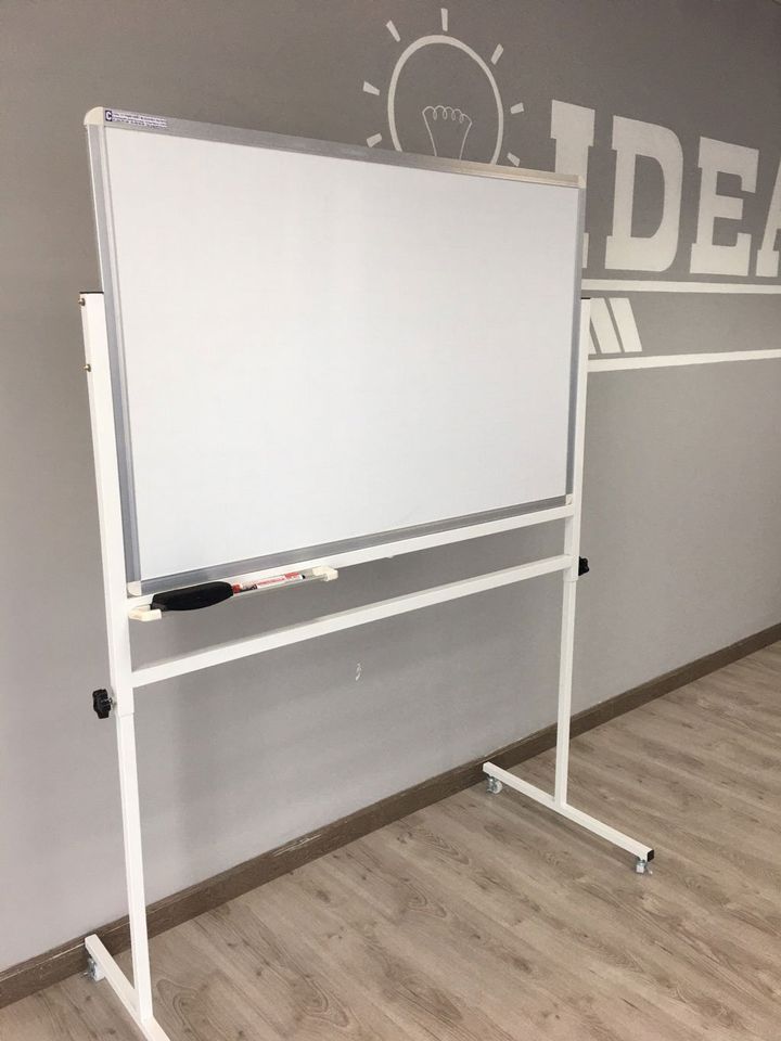 5. Chân bảng di động được làm bằng sắt sơn tĩnh điện màu trắng rất hài hòa với mặt bảng, được làm bằng sắt vuông 3 x 3cm hoặc 2 x 4 cm sơn tĩnh điện màu trắng sữa tạo cho bảng sang trọng và chắc chắn, phía dưới chân bảng có bốn bánh xe Taiwain có thể di chuyển hoặc gài cố định.