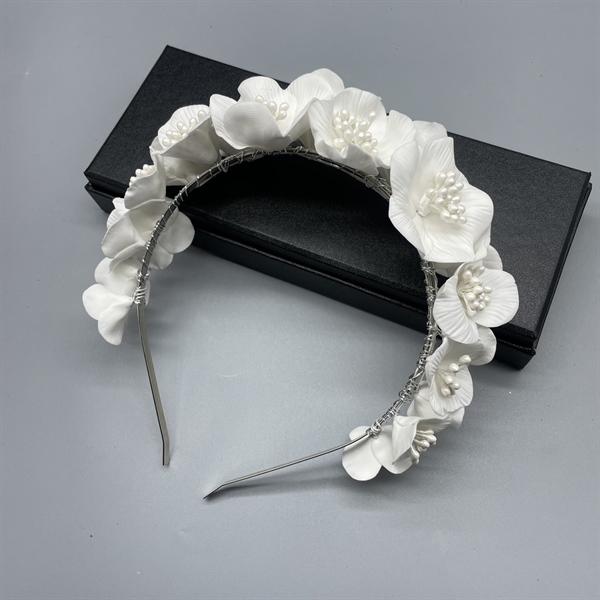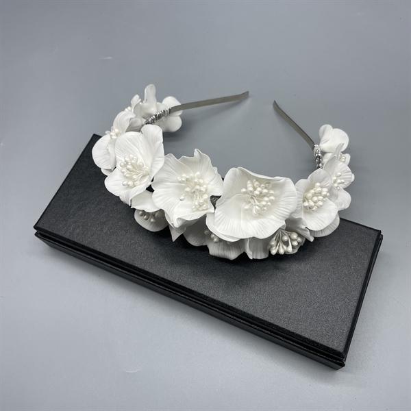 ✨Băng đô cài tóc hoa đất sét trắng thủ công 3d dễ thương cho cô dâu