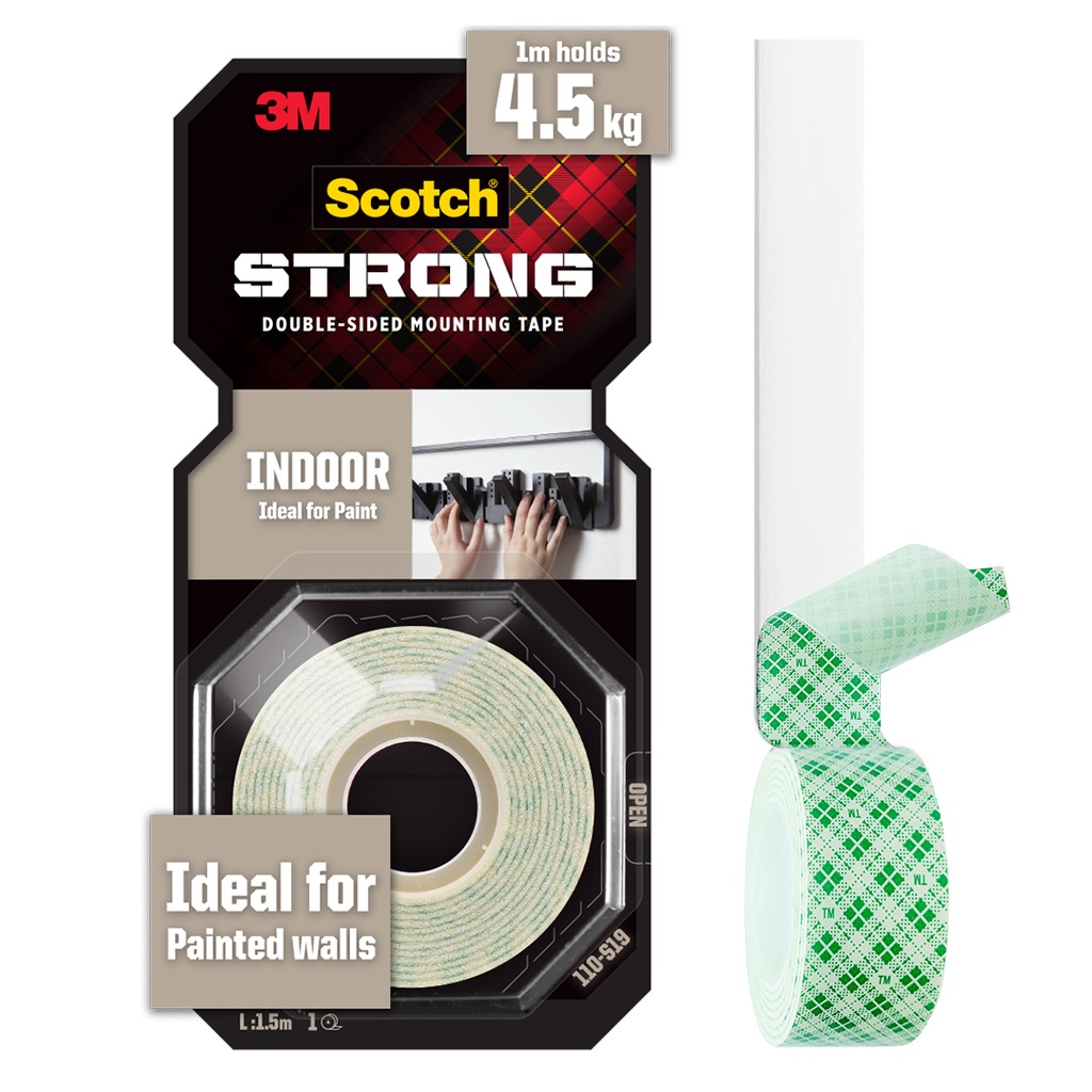 ✨Băng keo siêu dính 2 mặt màu trắng khổ 19mm Scotch 3M SB-BK110 - Cường lực, thẩm mỹ, dán trong nhà, logo, móc treo đồ