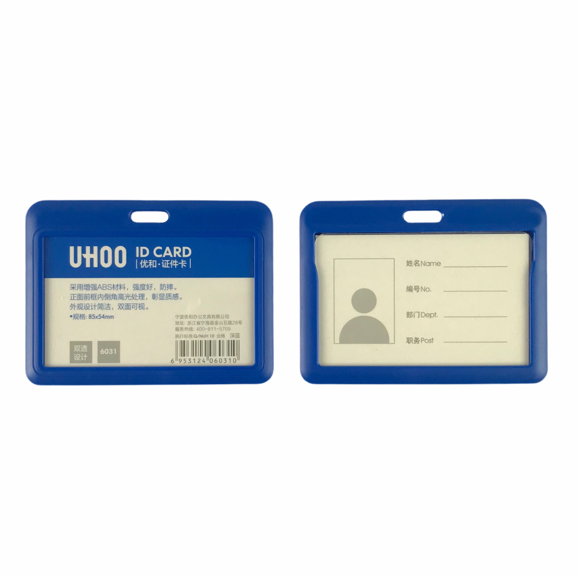 Bảng tên Uhoo 6031 8.5x5.4cm 2 mặt ngang (6) Quy cách: Kích thước lọt lòng 85 x 54mm Đơn vị tính: