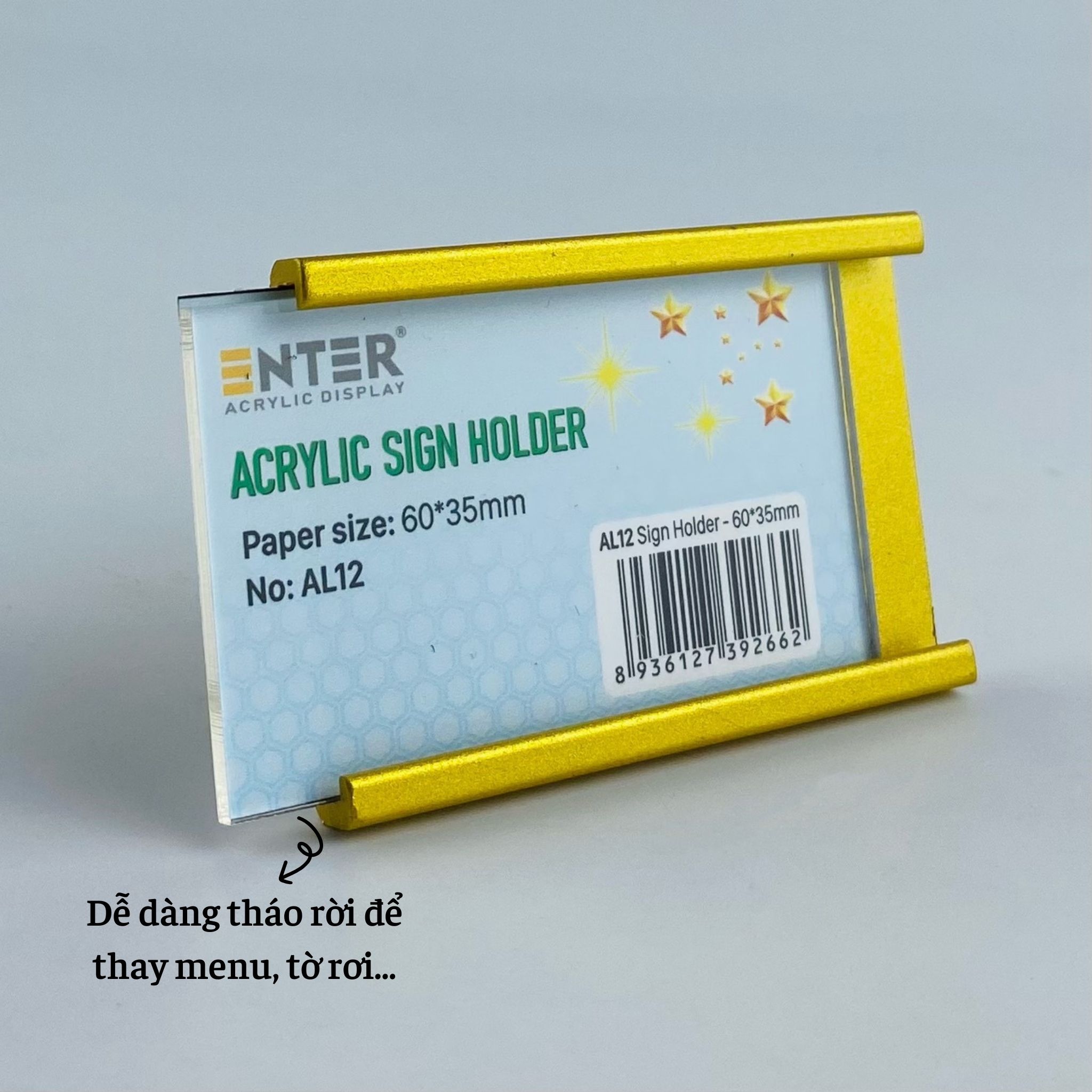 Bảng thông tin nhôm Enter có thiết kế đơn giản, tuy nhiên lại tiện lợi khi sử dụng, mang lại tính thẩm mỹ và tác dụng quảng cáo, marketing cao... Thân kệ được làm từ nhôm chắc chắn, màu sắc sang trọng, không bị oxi hóa theo thời gian, dễ dàng vệ sinh. Mặt bảng được làm từ mica trong suốt chất lượng cao không bị đục, mờ, rạn nứt, dễ dàng nhìn rõ nội dung. Bảng thông tin để bàn dễ dàng thay đổi nội dung, tiết kiệm được chi phí mỗi khi thay đổi thực đơn, thay đổi thông tin khuyến mãi...