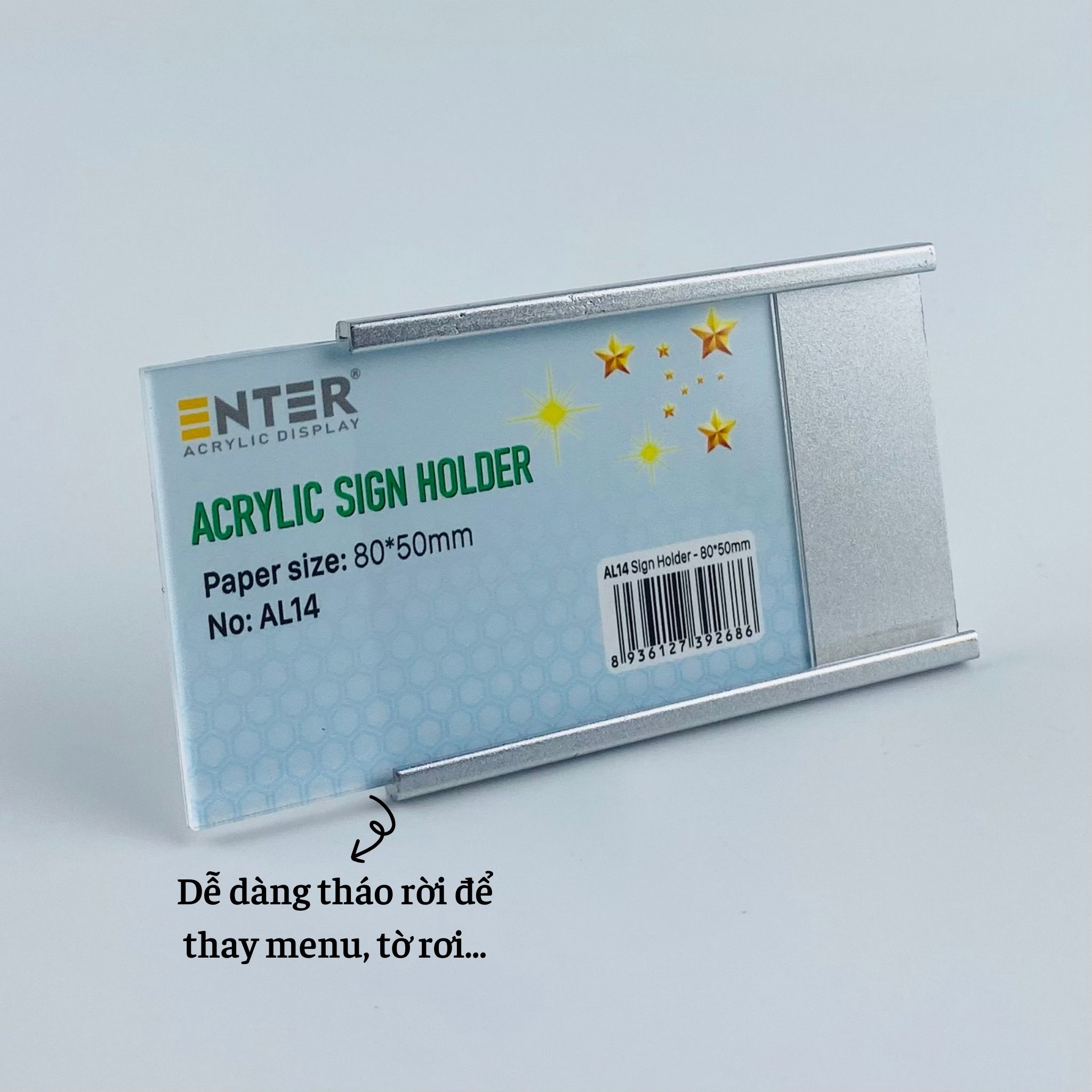 ✨Bảng thông tin nhôm Enter AL14 80x50mm, Khung thông tin sản phẩm, Khung bảng giá siêu thị, Tag thông tin mini