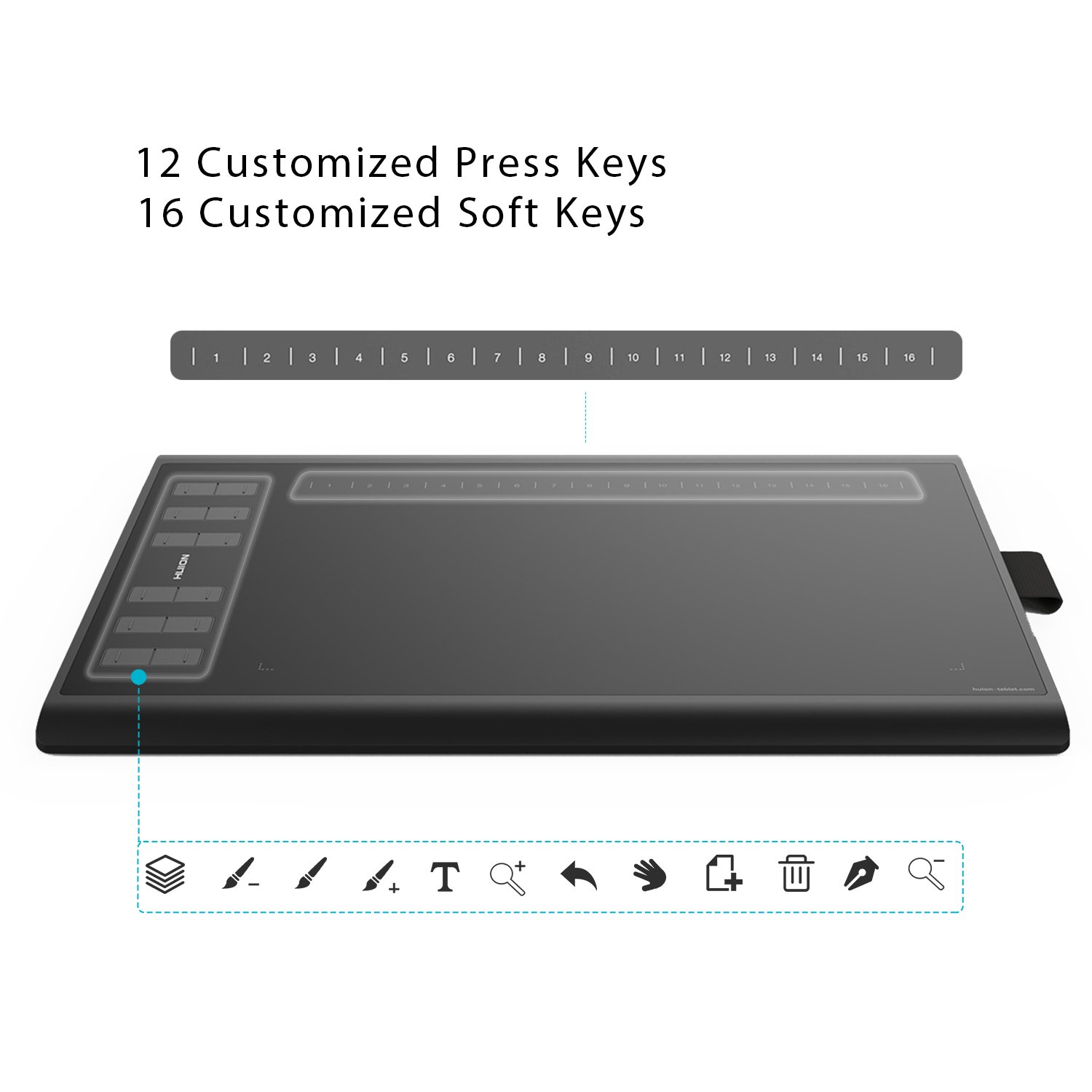 - phím tắt tùy chỉnh: 12 phím bấm tùy chỉnh + 16 phím mềm tùy chỉnh 3.8192 Mức độ nhạy cảm áp lực: Độ nhạy áp lực của nó cao gấp bốn lần so với hầu hết các sản phẩm đồng nhất gần đây trên thị trường với chỉ 2048 mức. 4.khu vực làm việc đầy đủ: 10 x 6.25 inch khu vực làm việc cung cấp cho người dùng với đủ không gian để làm việc. 5.Fully plying-up thiết kế: nắm vững máy tính để bàn để giải quyết một môi trường làm việc ổn định.