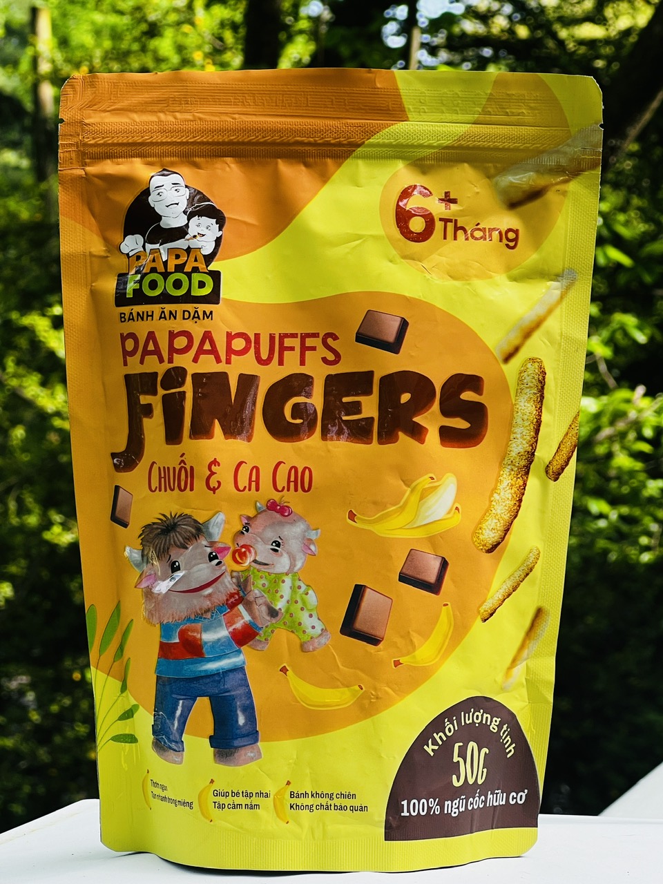 Mua tại Tiktok- Tên sản phẩm: Bánh ăn dặm PAPAPUFFS FINGERS - VỊ CHUỐI VÀ CACAO .