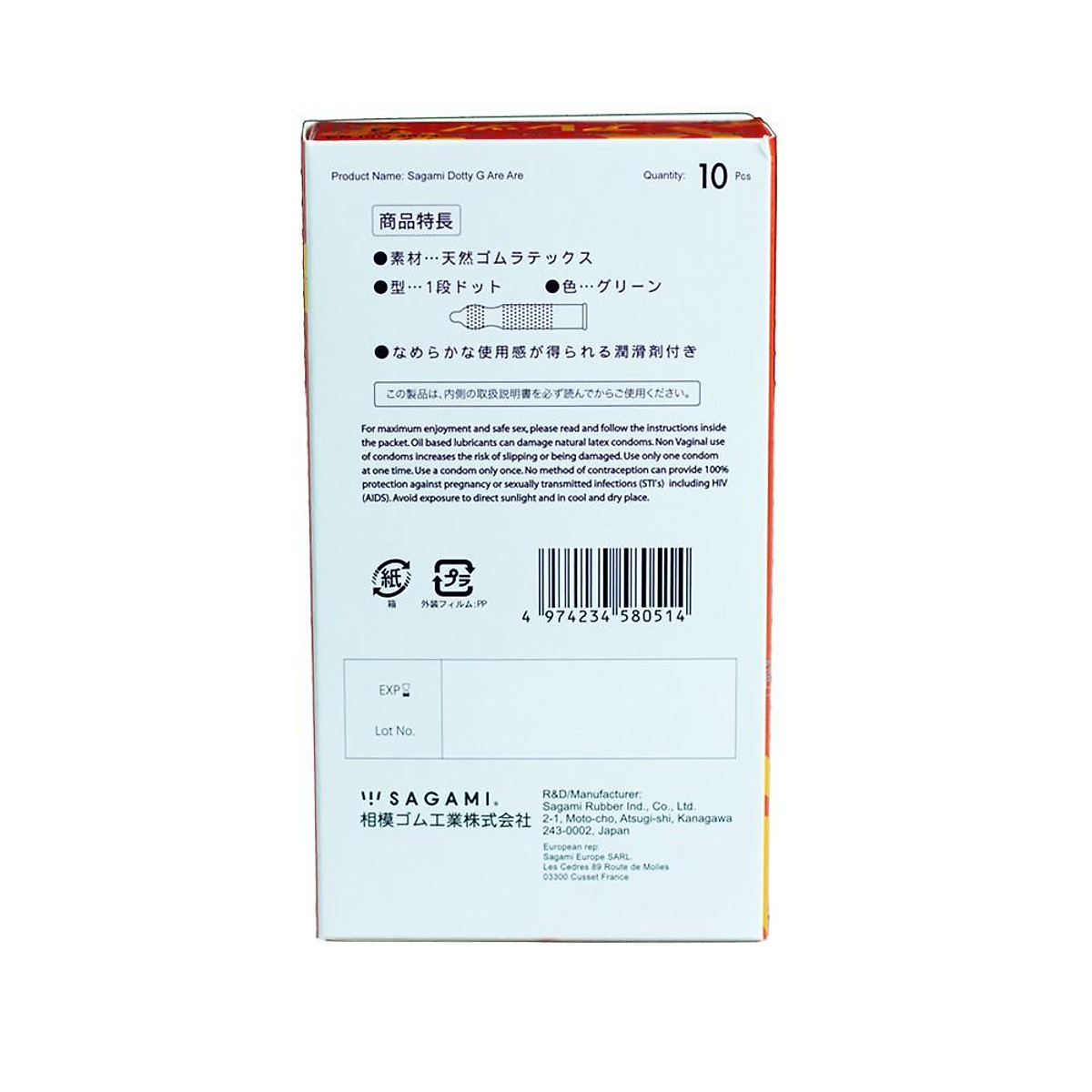 - Bao cao su Sagami Are Are là dòng sản phẩm có gai nhỏ - chấm nổi, một lần thắt của Sagami – Nhà sản xuất bao cao su đầu tiên tại Nhật Bản. TÍNH NĂNG SẢN PHẨM bao cao su Sagami Are Are
