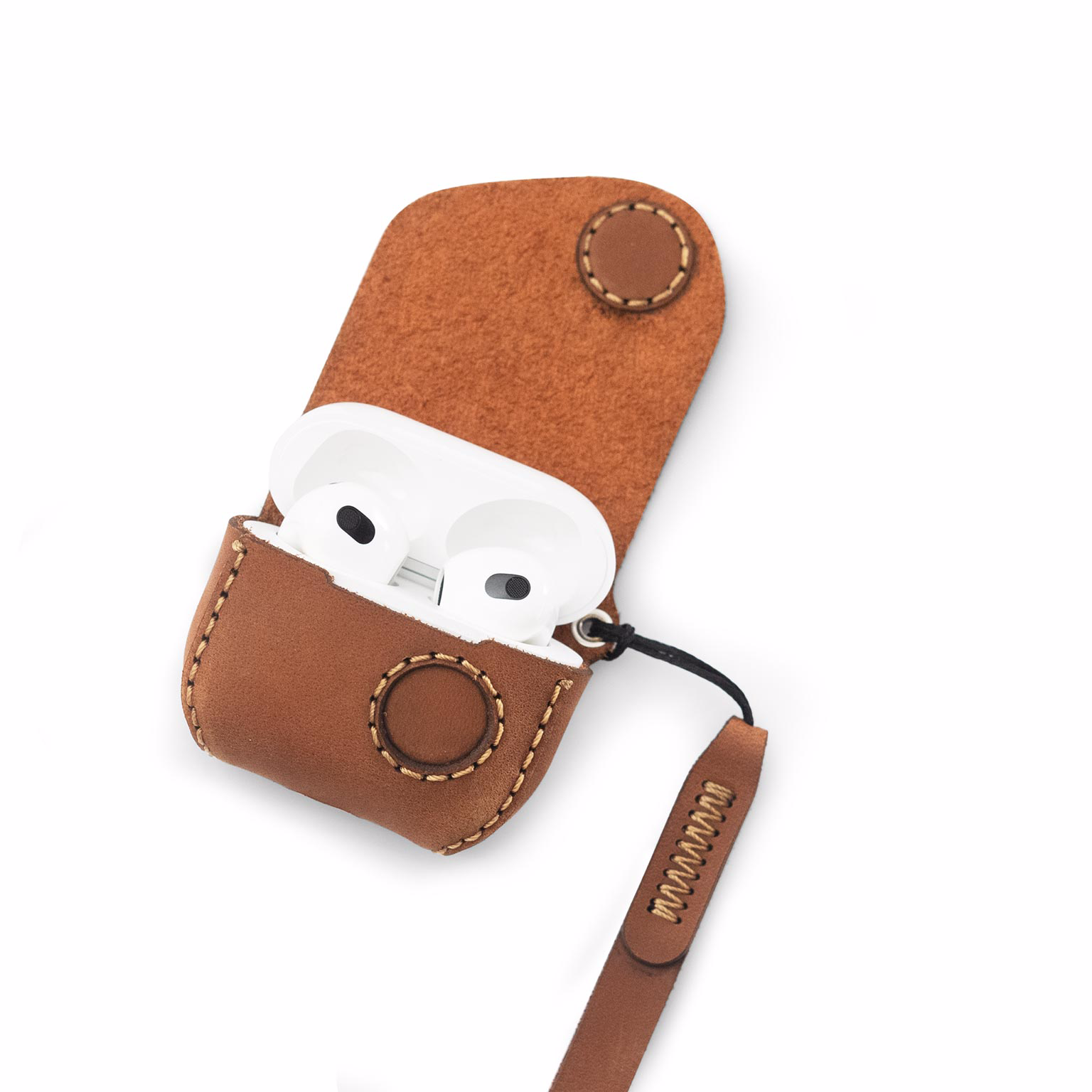 Thiết kế tối giản với đường cắt góc bo tròn mềm mại ôm sát sản phẩm, lớp da bò thô bên trong giúp làm sạch bề mặt hộp đựng tai nghe và tạo cảm giác