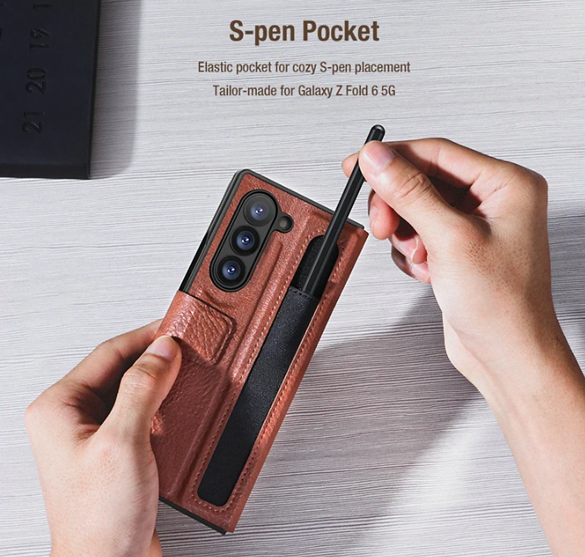 Bao da Samsung Galaxy Z Fold 6 NILLKIN Aoge Leather với phong cách doanh nhân cổ điển, sang trọng, đường khâu chính xác. Chất liệu da PU cao cấp, mềm mại, chắc chắn với các vân sần rất nhỏ và mịn hướng đến sự tinh giản đẹp mắt. Ốp lưng nhựa cứng (PC) bền bỉ giúp bạn bảo vệ và làm đẹp cho máy của bạn một cách toàn diện hơn