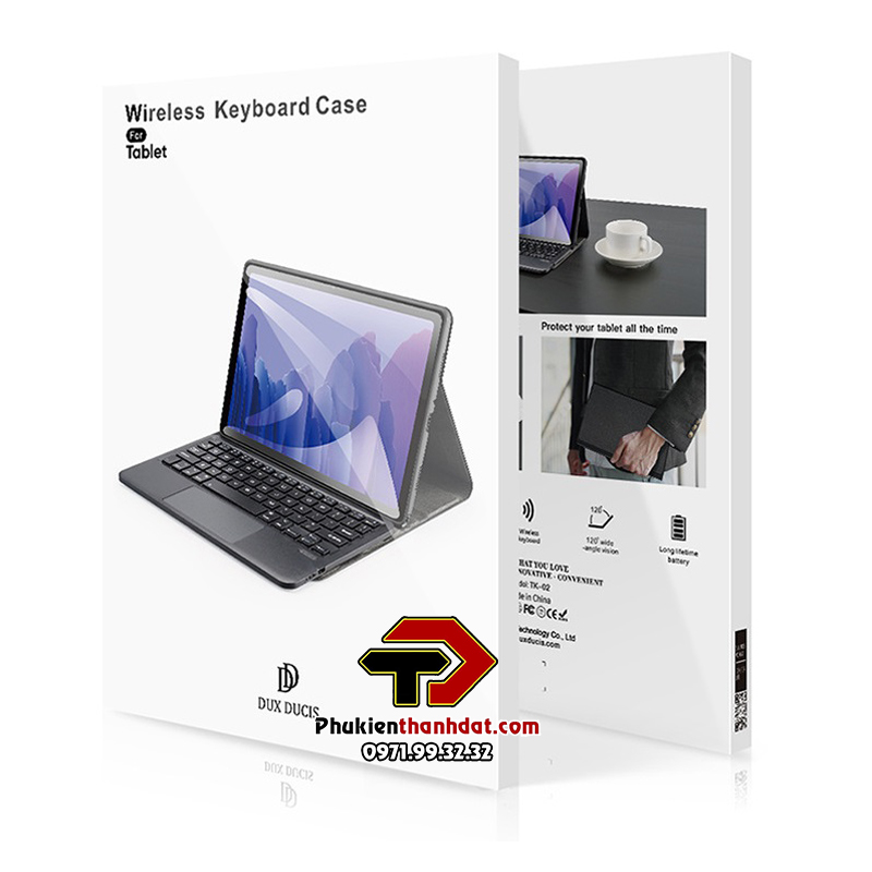 Bao da kèm bàn phím chính hãng Dux Ducis có bàn di chuột TrackPad vừa khít với thân máy và với thiết kế trượt ống kính đã được cấp bằng sáng chế, nó cung cấp khả năng bảo vệ đáng tin cậy cho mặt trước, mặt sau, bốn góc và camera của thiết bị. Vẻ ngoài đơn giản và chất liệu vải PU tinh tế hòa quyện với tính thẩm mỹ của máy tính bảng, nơi nghệ thuật và công nghệ được tích hợp hoàn hảo