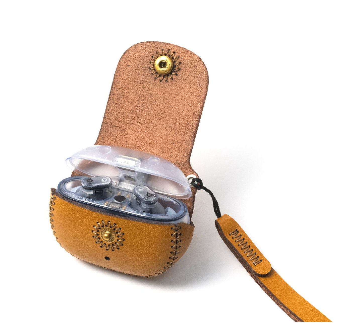 Sản phẩm được thiết kế riêng cho bao da tai nghe Bose Ultra Open Earbuds. Thiết kế tối giản với đường cắt góc bo tròn mềm mại ôm sát sản phẩm, lớp da bò thô
