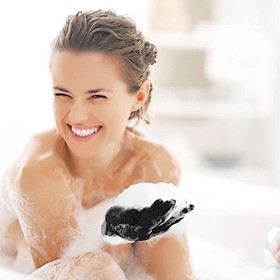 Chỉ cần đeo vào tay r làm ướt, cho tí sữa tắm vào chà 2 tay là bọt lên tung toé xong matxa khắp người phê pha Bọt nhiều, chất găng hơi ráp giúp tẩy sạch tế bào chết trên da và kích thích tái tạo da mới, đặc biệt các vùng khuỷu tay đầu gối nhưng không gây rát, xức da, đỏ hay đau xíu nào, kiểu như dùng bông tắm thui ấy, dạng găng còn siêu tiện lợi kì khắp lưng và các kẽ ngón chân nữa để sạch bong kin kít, ko lo mụn lưng luôn