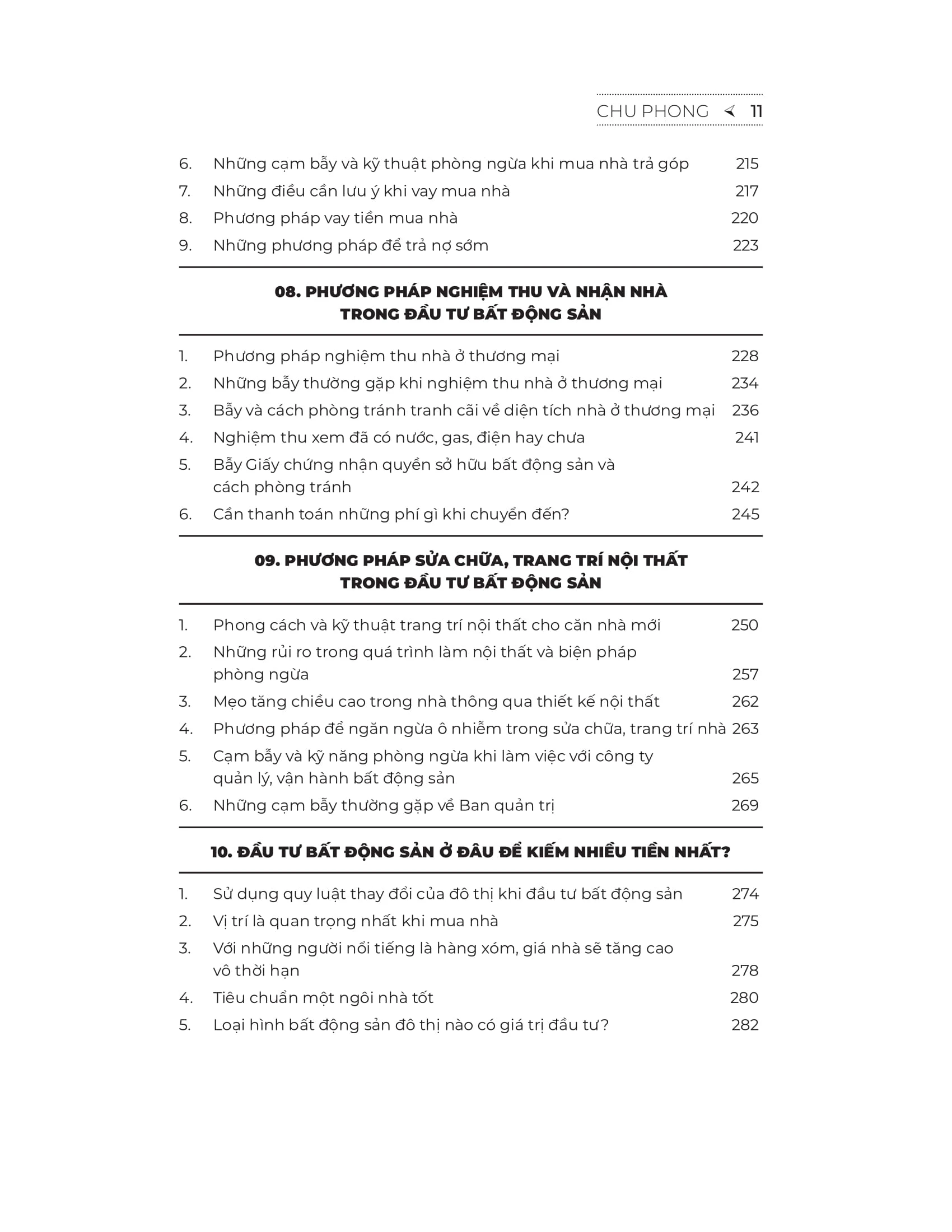 - Cuốn sách trình bày một cách chi tiết các loại hình đầu tư bất động sản hiện nay, mỗi loại hình đều chỉ rõ ưu, nhược điểm, các phương pháp đầu tư, các cạm bẫy cần tránh cho nhà đầu tư mới gia nhập thị trường.