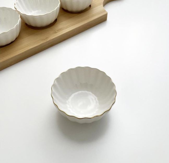 Cotton: là sự liên tưởng nhẹ nhàng đến sợi bông gòn mong manh cùng mới tone màu trắng mang lại cảm giác ấm áp, tinh khiết. Bộ bát ăn “Cotton” cao cấp và thanh lịch thiết kế vừa mang hơi hướng cổ điển vừa mang tinh thần hiện hiện đại với viền mạ vàng.