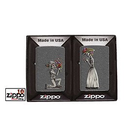 Cái chết không thể ngăn được tình yêu đích thực. Bộ hai chiếc bật lửa chống gió Iron Stone này ghi lại câu chuyện tình yêu lãng mạn. Được đóng gói trong một hộp đựng dạng quà tặng. Để tối ưu hiệu suất, hãy dùng nhiên liệu bật lửa của Zippo.