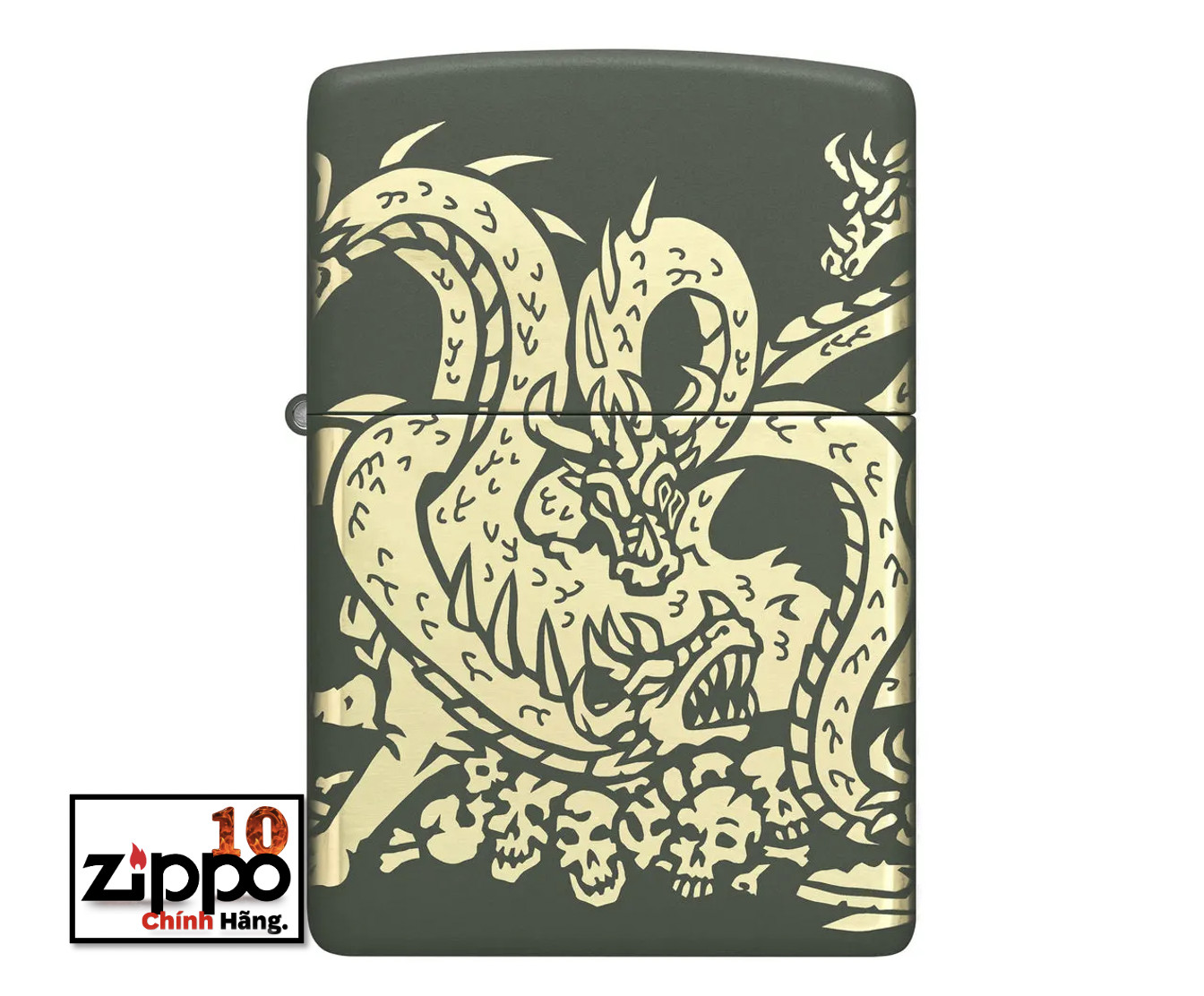 Mẫu Green Matte mạnh mẽ này đánh dấu sự ra mắt của phương pháp khắc Laser 360° sắc nét và chính xác trên các mẫu đế mờ đặc trưng của chúng tôi – một phương pháp xử lý trước đây chỉ dành riêng cho bề mặt trước. Tác phẩm được chỉ huy bởi một con rồng nhiều đầu trên đỉnh tàn tích của những kẻ thách thức nó, được mô tả bằng tông màu đồng sáng bóng. Được đóng gói trong một hộp đựng dạng quà tặng. Để tối ưu hiệu suất, hãy dùng nhiên liệu bật lửa của Zippo.