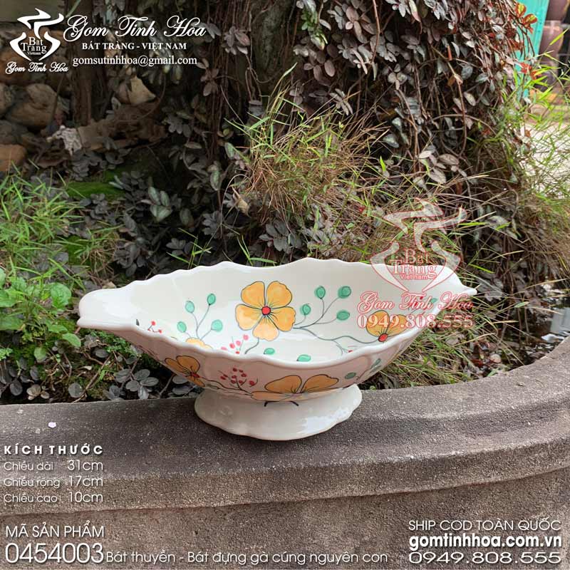 Bát thuyền gốm sứ - Bát bày gà cúng gốm sứ Bát Tràng cao cấp.