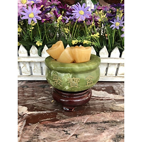 Mua tại TiktokChất liệu: Đá ngọc serpentine Kích thước: Đường kính 10 cm Bao gồm: 10 thỏi vàng và 1 đế gỗ Khối lượng: 900g Bát tụ bảo hay còn gọi là Tụ bảo bồn, là vật đựng phong thủy chiêu tài lộc, may mắn, hóa giải vận đen, rất được chuộng trong phong thủy. Trong lý luận của phong thủy dương trạch, bất kể công ty hoặc nhà ở, đều có vị trí “tài vị”. Nếu điểm tài vị này được bố trí tốt hay đặt những vật chiêu tài sẽ khiến cho đường tài vận của cả nhà tốt đẹp. Vị trí đặt: Phòng khách, bàn làm việc, bàn thờ thần tài, quầy lễ tân, cửa hàng kinh doanh để thu hút vượng khí, tài lộc.