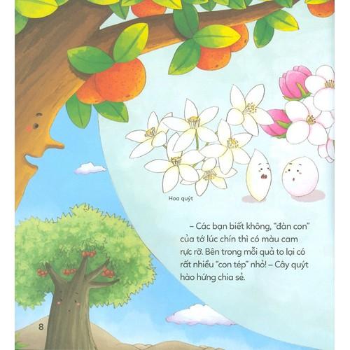 Cuốn “Đàn con” của cây nằm trong bộ “Thực vật diệu kì” giúp trẻ khám phá quá trình ra hoa, kết trái của một số loại cây ăn quả với sự đa dạng về màu sắc, hình dạng của các loại quả và sự “biến hình” kì diệu từ hoa thành quả xanh, quả chí Còn rất nhiều điều diệu kì khác về các loại quả, lí do tạo nên hình dạng của chúng, nguyên nhân quả chín và rụng, loại quả tốt cho sức khoẻ con người… đầy thu hút với trẻ và đưa trẻ vào cuộc phiêu lưu khám phá kì thú.