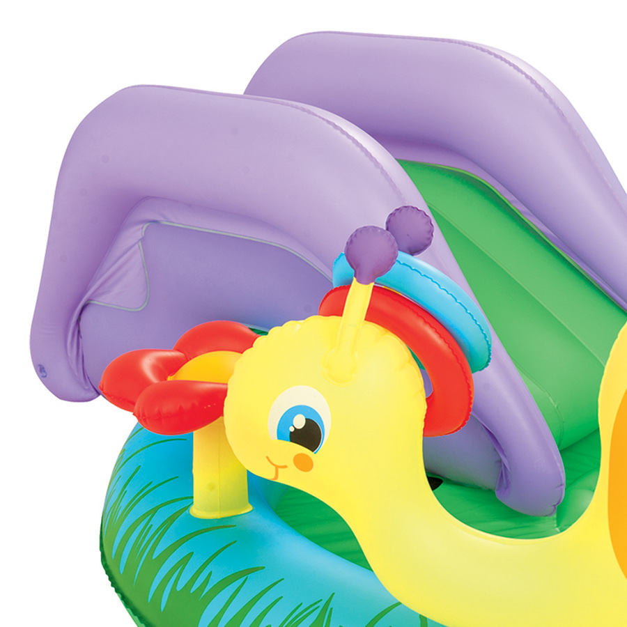 - Bể Phao Liên Hoàn Cầu Trượt Ốc Sên Bestway 53055 cho bé thỏa sức nô đùa, chơi nhiều trò chơi với nước thật sảng khoái trong mùa hè nóng bức. Liên hoàn cầu trượt, 2 vòng bơm hơi hình chú ếch, ốc sên dễ thương và 6 quả bóng trò chơi làm từ nhựa PVC an toàn đem đến cho bé những điều thú vị bổ ích cùng gia đình mình.