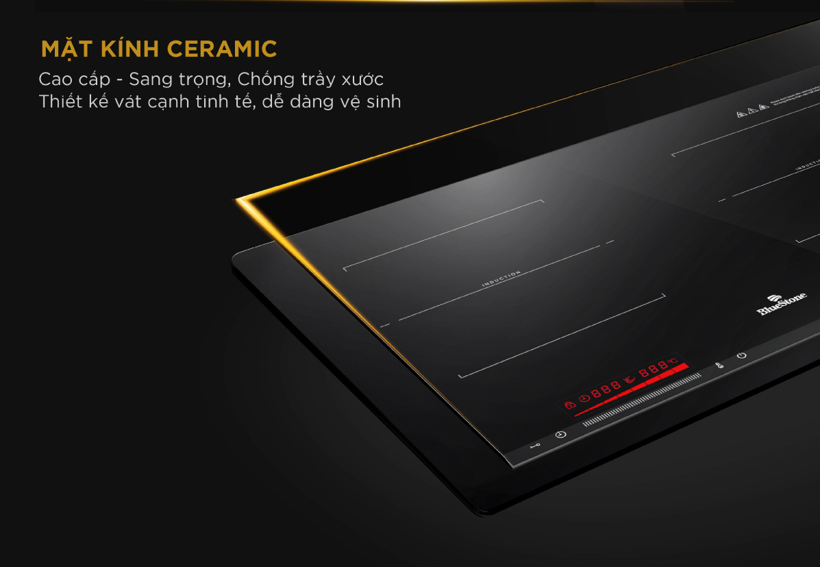 2. Mặt kính cao cấp - Điều khiển cảm ứng hiện đại  Mặt kính Ceramic cao cấp với khả năng chịu nhiệt và chịu lực cao, chống trầy tốt, không lo nứt vỡ do sốc nhiệt thông thường. Thân và đáy bếp sơn tĩnh điện chống gỉ sét, hạn chế trầy xước và rò rỉ điện.