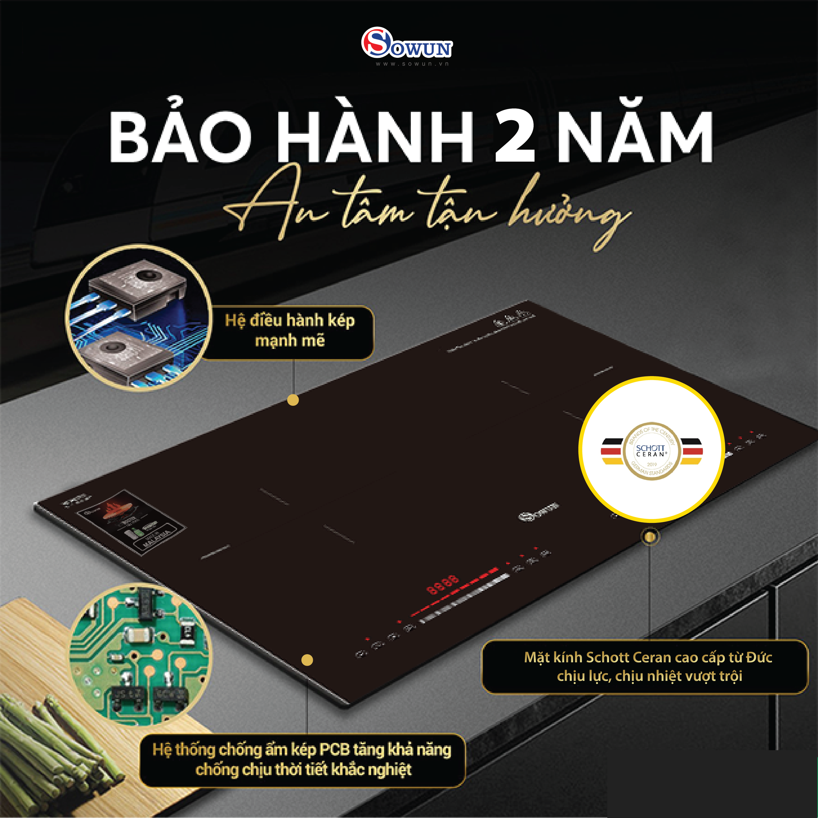 ✨Bếp Điện Từ Đôi Nhập Khẩu SOWUN SW1228 ,Mặt Kính CERAMIC Cao Cấp Chịu Được Nhiệt Độ Cao