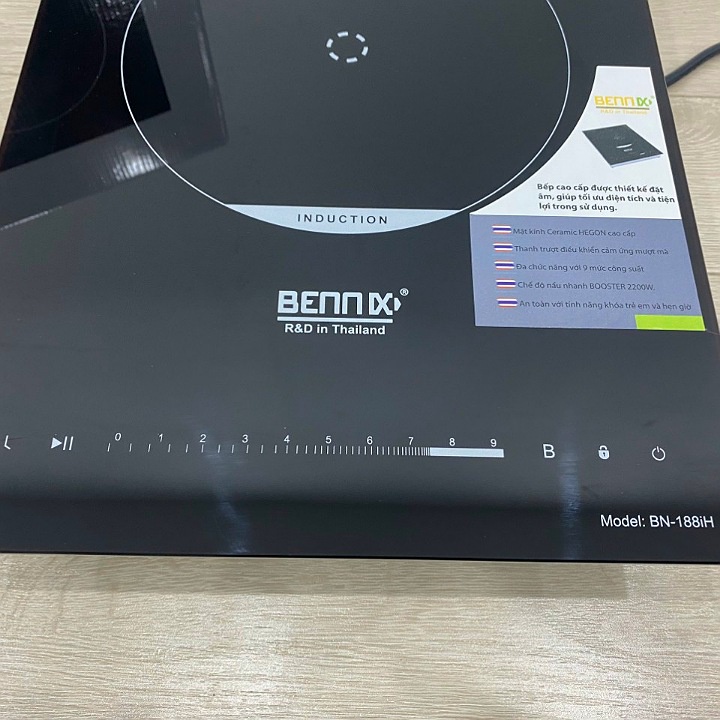 Bennix là mẫu bếp từ đơn rất được ưa chuộng, đến từ thương hiệu của Thái Lan, áp dụng dây chuyền sản xuất hiện đại của Đức đảm bảo độ bền. Bếp từ sở hữu màu đen tuyền sạch sẽ, bề mặt bếp bằng kính ceramic có khả năng chịu nhiệt độ cao, chịu lực tốt, dễ lau chùi vệ sinh bằng khăn ẩm.