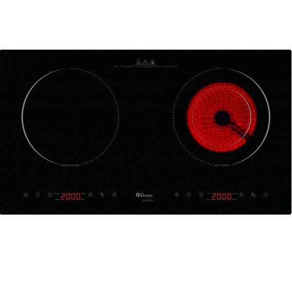 Bếp điện từ kết hợp: 01 điện + 01 từ Đầu đốt EGO High light Made In Germany 02 vòng nhiệt Mặt kính crystal siêu bền, chịu lực chịu sốc nhiệt IGBT SIMENS Made In