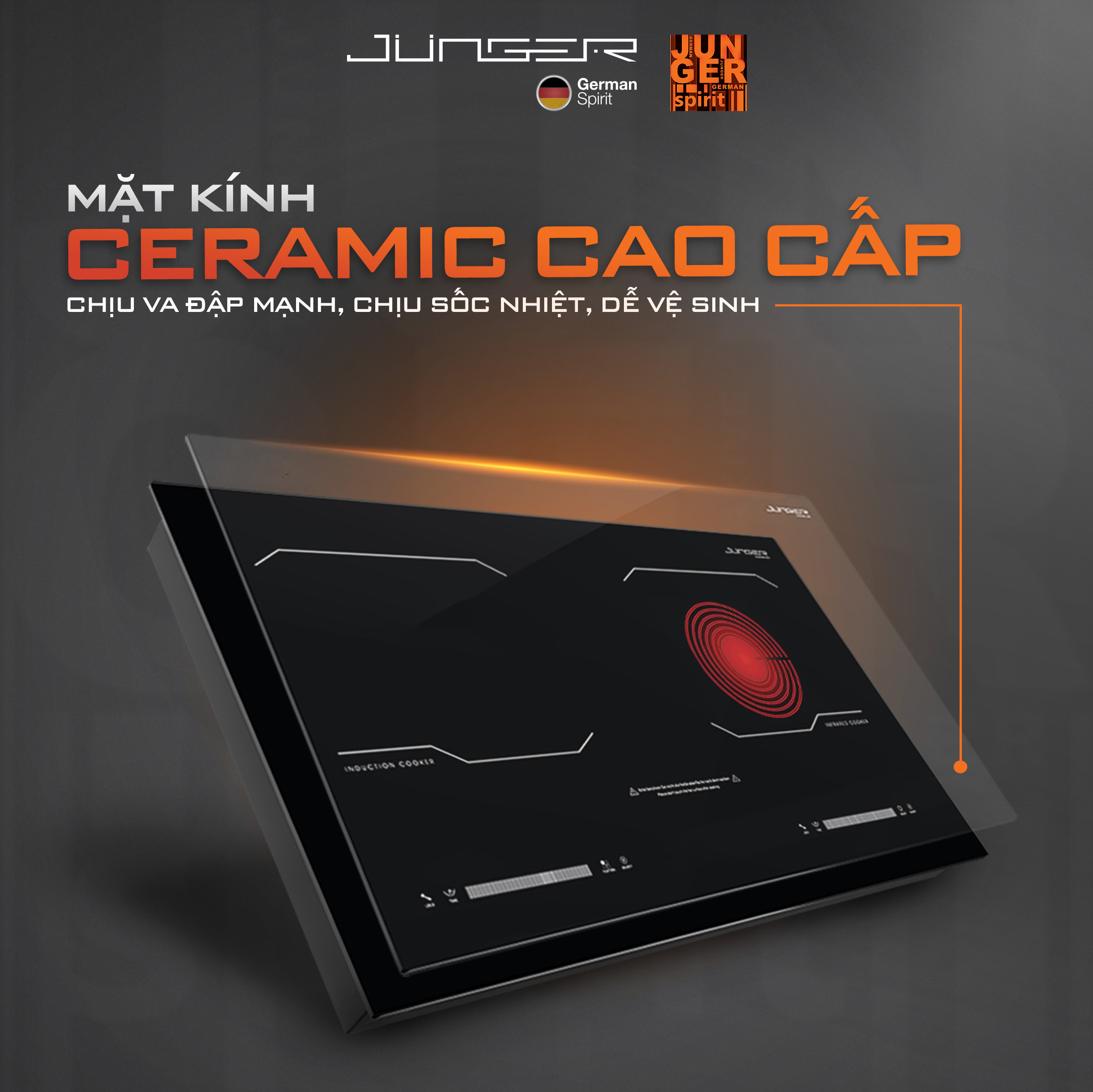 Bếp điện đôi Junger MK-24 sử dụng mặt kính Ceramic nano kháng khuẩn cao cấp có khả năng chịu nhiệt cao giúp bếp bền bỉ qua thời gian. Ngoài ra, sản phẩm còn được ưa chuộng nhờ vào các tính năng tự động ngắt điện đảm bảo an toàn cho người sử dụng, thời gian sôi nhanh.... Với những tính năng ưu Việt, bếp điện từ hồng ngoại Junger nhanh chóng trở thành "trợ thủ" đắc lực cho gia đình bạn.