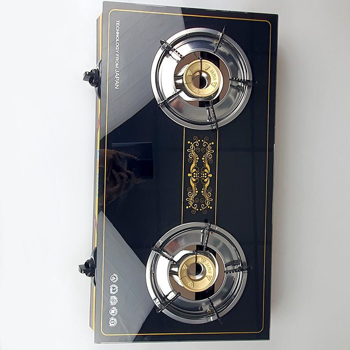 * Mặt kiếng cao cấp chịu lực, chịu nhiệt, thiết kế hoa văn sang trọng; - Thân bếp bằng inox, cao 100 mm; - Kiềng thép sơn tĩnh điện, có chắn gió; - Điếu loe