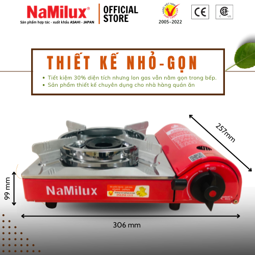 Bếp gas du lịch mini Namilux PM1811PF được thiết kế nhỏ gọn, kiểu dáng sang trọng, đẹp mắt. Để phục vụ cho nhu cầu ngày càng cao của người tiêu dùng, hãng Namilux luôn cải