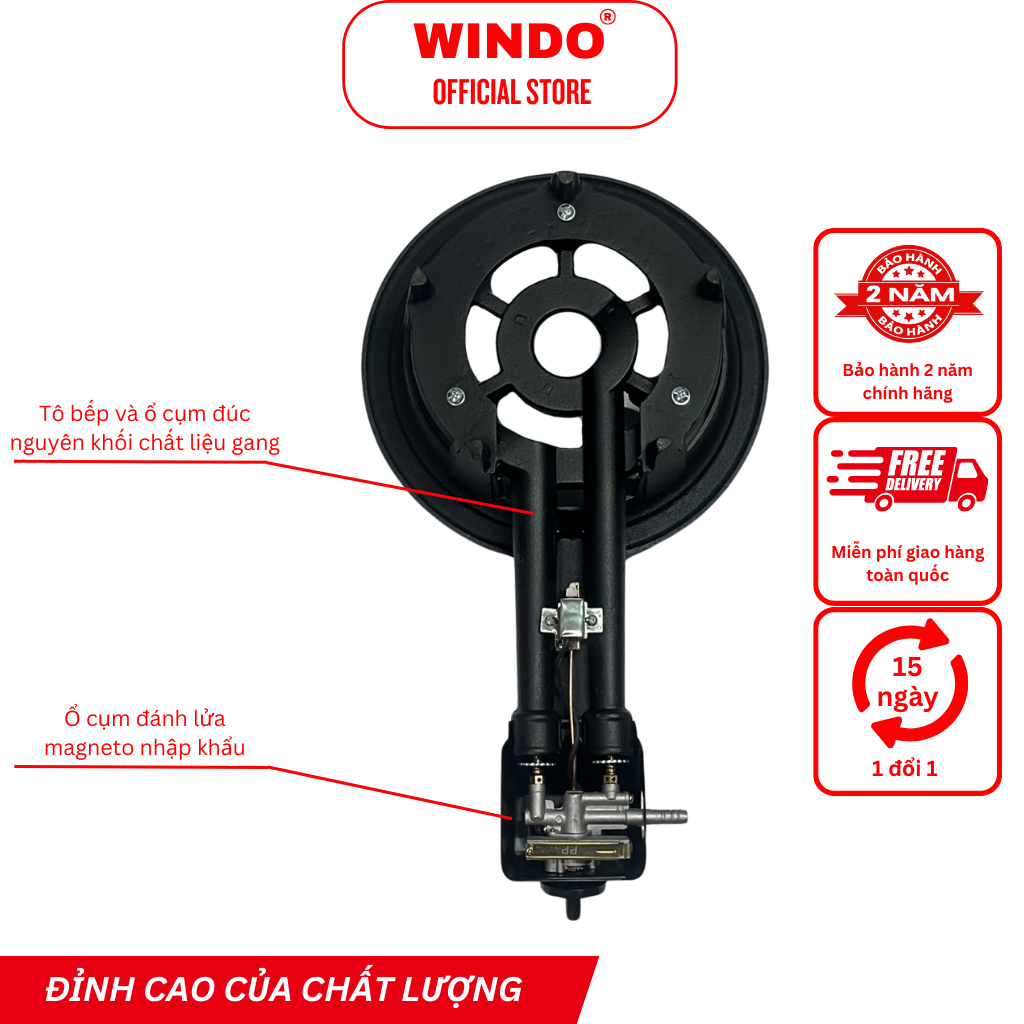 Bếp công nghiệp WINDO (280C),với đầu điếu gang đúc đường kính lớn,cho ngọn lửa lớn. Nấu nhanh và bền hơn so với các sản phẩm khác, đặc biệt chế độ tiết kiệm gas,khi hầm nước lèo,chiên xàới thời gian lâu.