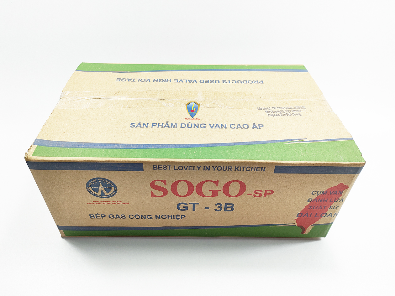 Bếp dùng hệ thống đánh lửa mageto, với cụm đánh lửa được nhập từ Taiwan. Toàn bộ kết cấu bếp được đúc bằng gang, và kiềng bếp rất chắc chắn. Sogo SP GT-3B sử dụng van cao áp và dây dẫn gas theo bếp cũng phải là loại dây chuyên dùng H.P.G. Bếp dùng được với loại bình gas lớn từ 4 - 12Kg.