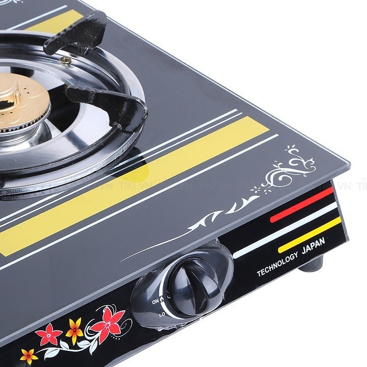 * Mặt kiếng cao cấp chịu lực, chịu nhiệt, thiết kế hoa văn sang trọng; - Thân bếp làm bằng inox chống rỉ sét, cao 60mm; - Núm vặn kiểu Rinnai; - Kiềng thép sơn