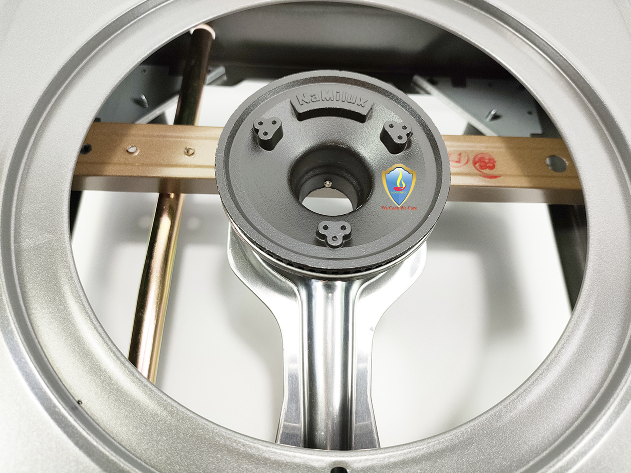 Bếp có hệ thống đầu đốt hỗn hợp nhôm và atimol, được chốt chặt với điếu, giúp tăng độ bền cho bếp. Hơn nữa, với thiết kế đó, bếp luôn tạo ngọn lửa xanh, đẹp.