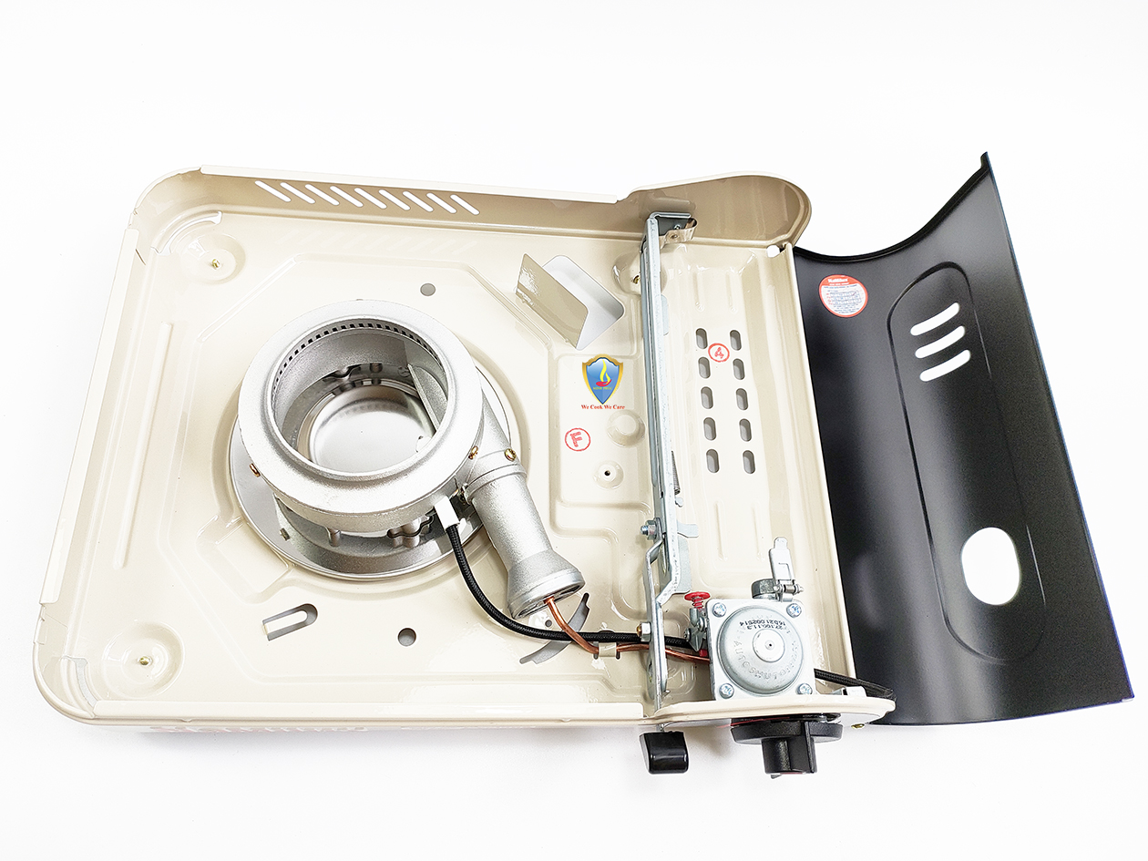 Bếp du lịch sử dụng van ngắt gas an toàn tự động Inline Cut. Bếp sử dụng hệ thống đầu đốt theo tiêu chuẩn JIA (Nhật Bản), kết hợp vòng chắn gió, giúp ngọn lửa