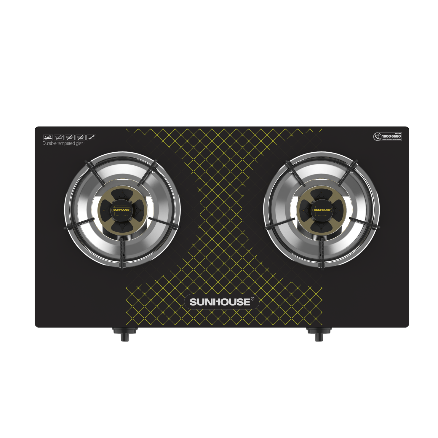 Bếp gas dương kính SUNHOUSE SHB3224 có 2 vùng đun, điều khiển lửa to, nhỏ bằng núm vặn tiện lợi, chế biến được nhiều món ăn cùng lúc. Mặt kính với gam màu đen trang nhã, sang trọng kết hợp cùng hoạ tiết kẻ sọc tinh tế.