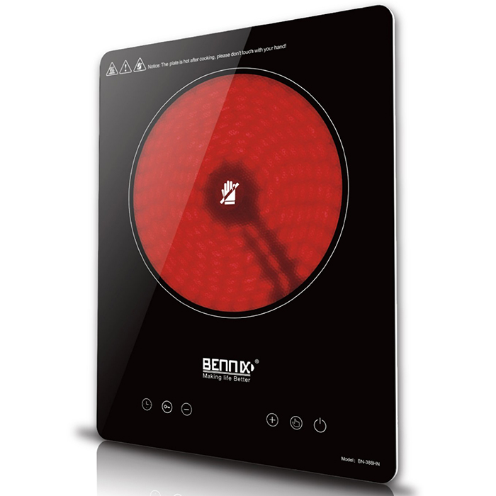 Bếp hồng ngoại Bennix BN-388H có thiết kế nhỏ gọn cùng màu đen sang trọng kết hợp với các họa tiết giúp sản phẩm trở nên bắt mắt, phong cách, góp phần làm tăng nét trẻ trung cho không gian bếp của bạn.