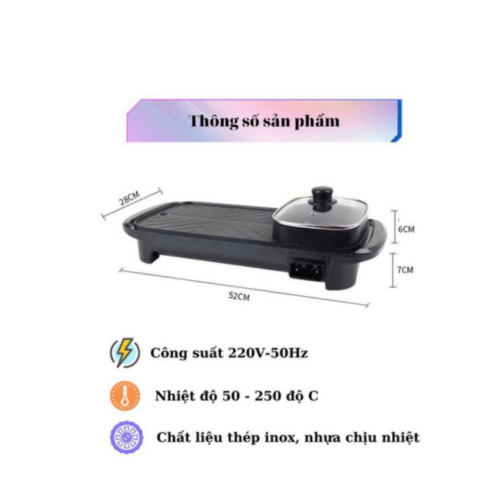 ️THÔNG TIN CƠ BẢN ️ Điện thế: 220V/50Hz ️ Công suất: 1800W nhiệt độ 50 - 240 độ ️ Số ngăn: Ngăn lẩu và ngăn nướng ️ Kích thước hộp: 426*15*433 mm. ️ Cân nặng: