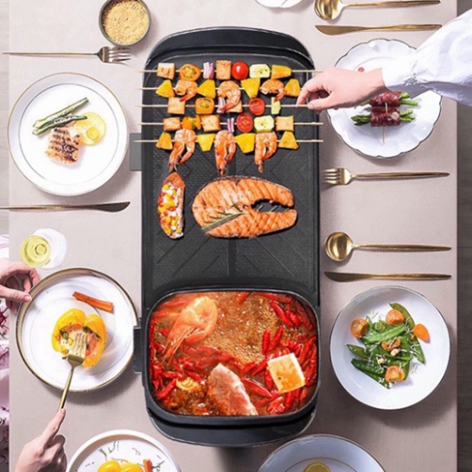 ✨Bếp lẩu nướng 2in1 đa năng cao cấp dài, nồi lẩu kiêm nướng công suất 1300w, bề mặt tráng men chống dính - Hàng chính hãng