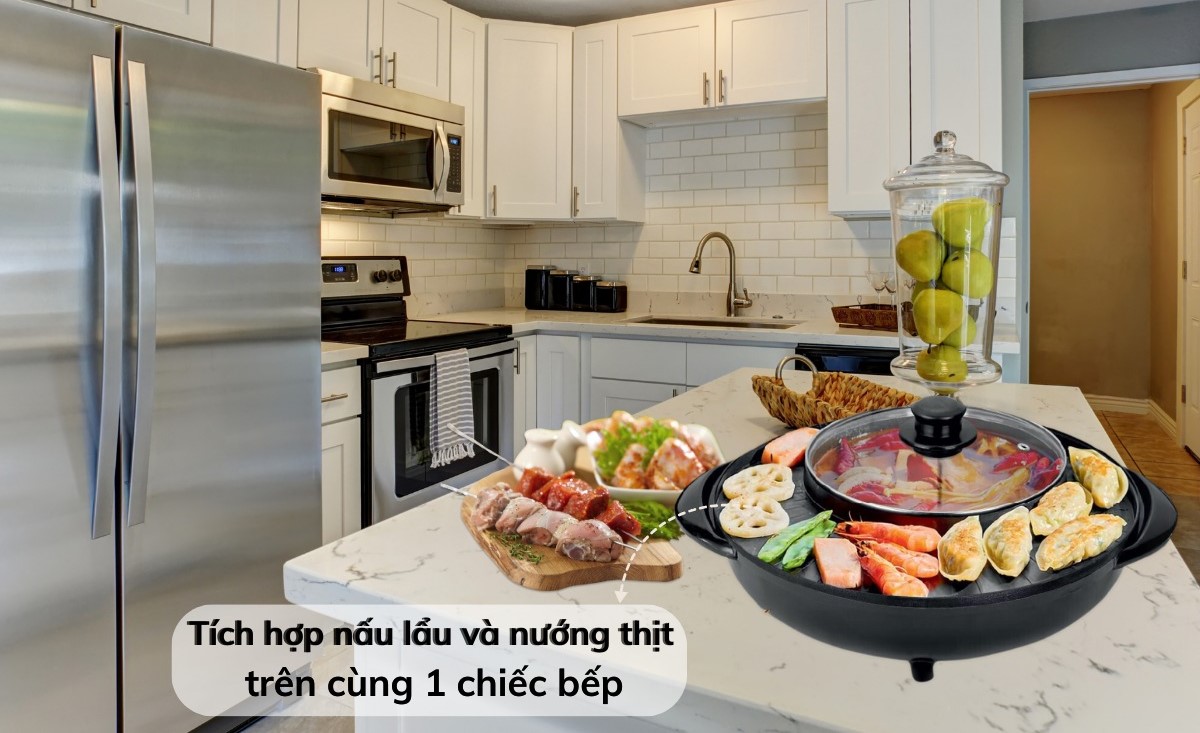 Là một thiết bị nhà bếp sử dụng điện năng để chuyển hóa thành nhiệt năng nhằm mục đích phục vụ 2 nhu cầu cùng lúc đó là: * Nấu lẩu * Làm đồ nướng