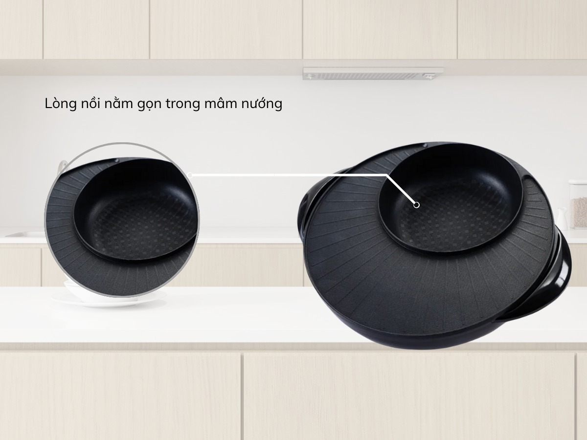 - Khám phá sự tiện lợi với thiết kế 2 trong 1: lẩu và nướng.