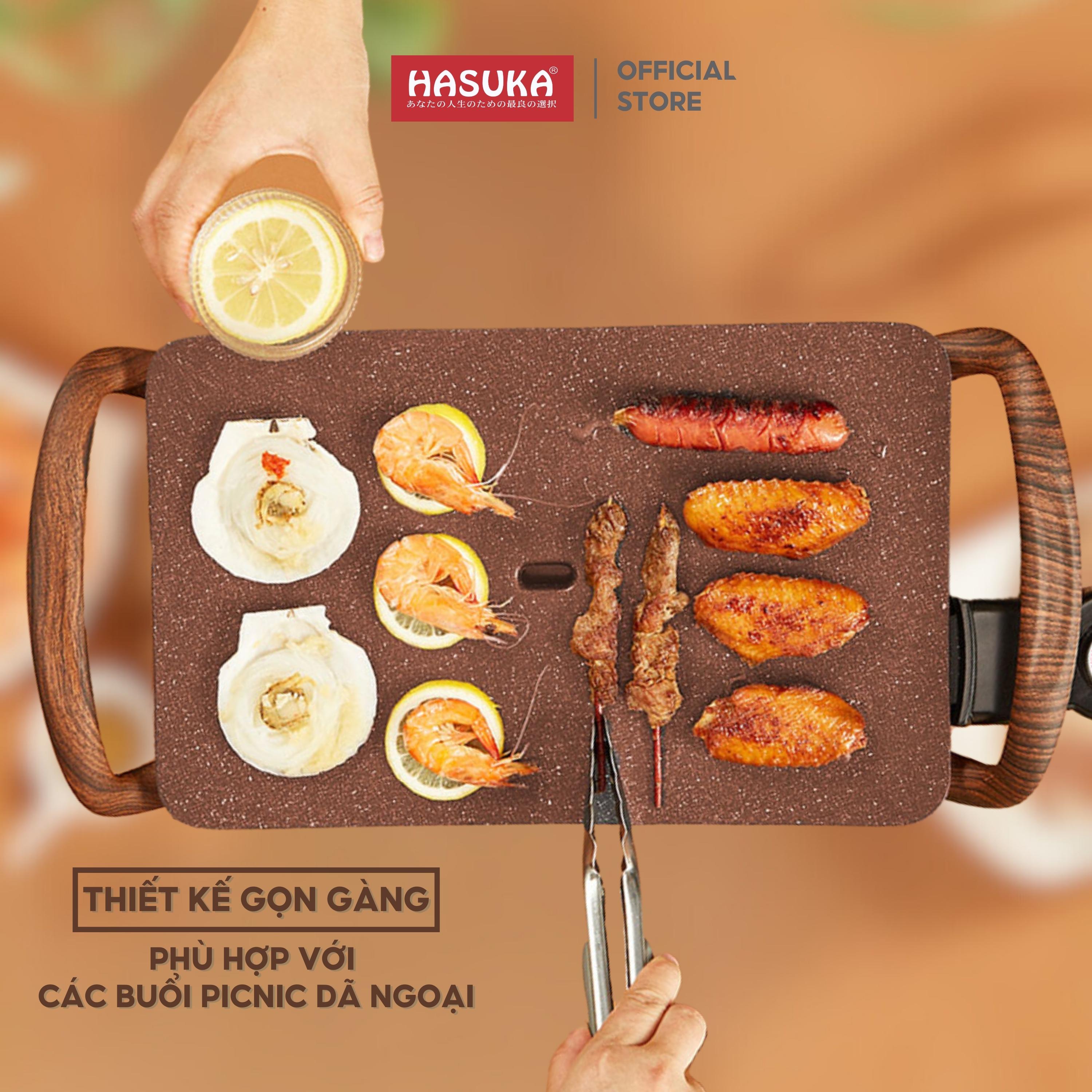 Bếp lẩu nướng đa năng HASUKA HSK-366LN 2in1 nướng lẩu đồng thời, lòng nồi chống dính Ceramic an toàn