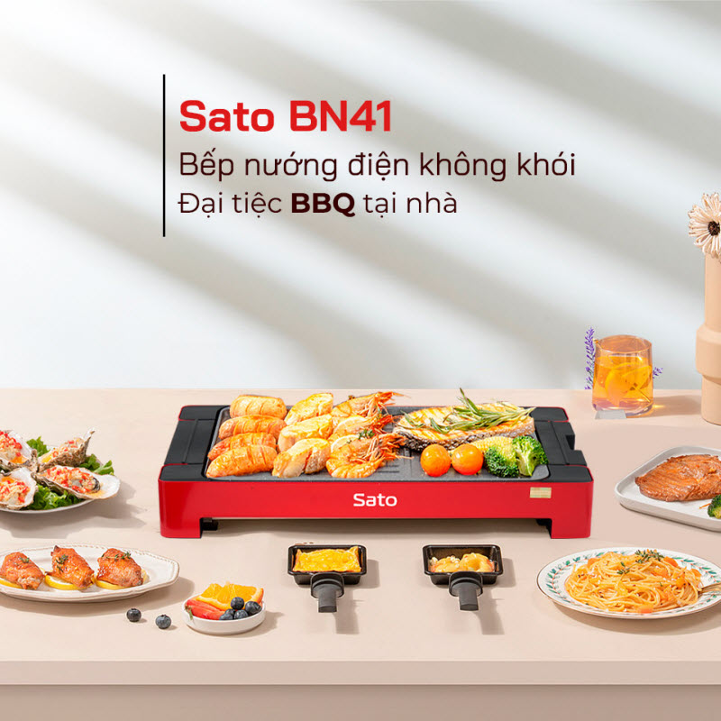 ✨Bếp nướng điện SATO BN41 - Thân bếp hợp kim nhôm đúc nguyên khối phủ chống dính cao cấp. Công nghệ Nhật Bản - Sản xuất tại Việt Nam - Miễn phí vận chuyển toàn quốc - Hàng chính hãng