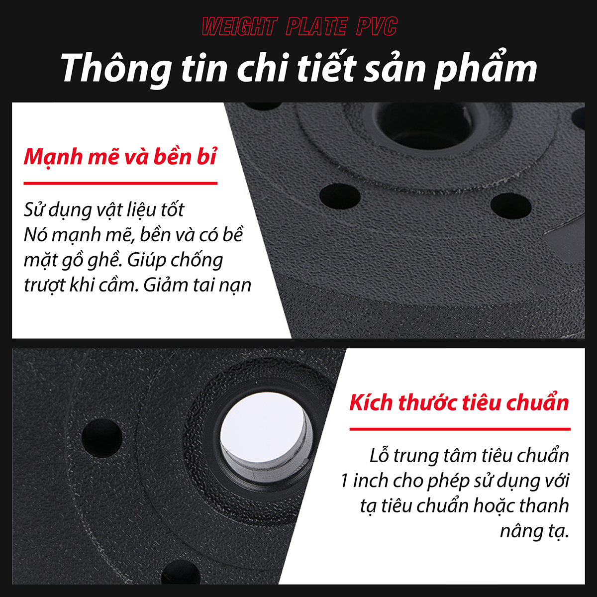- Tạ có các mức khối lượng từ 1.25kg-15kg cho bạn dễ lựa chọn theo nhu cầu.