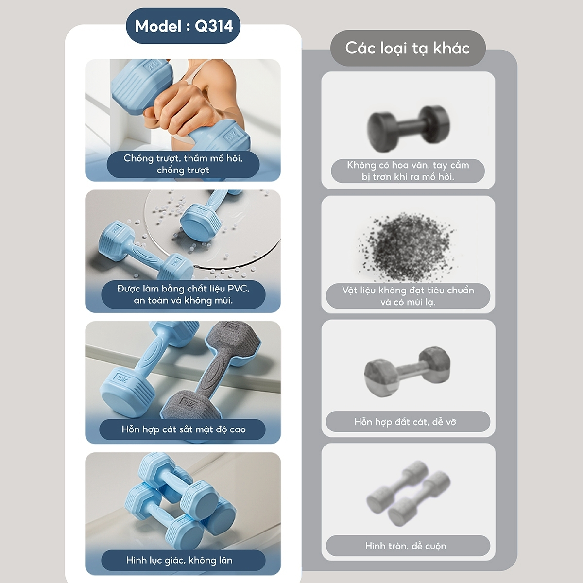Phần ngoài tạ có phủ một lớp cao su cao cấp, mềm mại cho cảm giác cầm rất thoải mái, êm tay và tránh hiện tượng lõi bị gỉ cũng như một số chấn thương nhỏ khác.