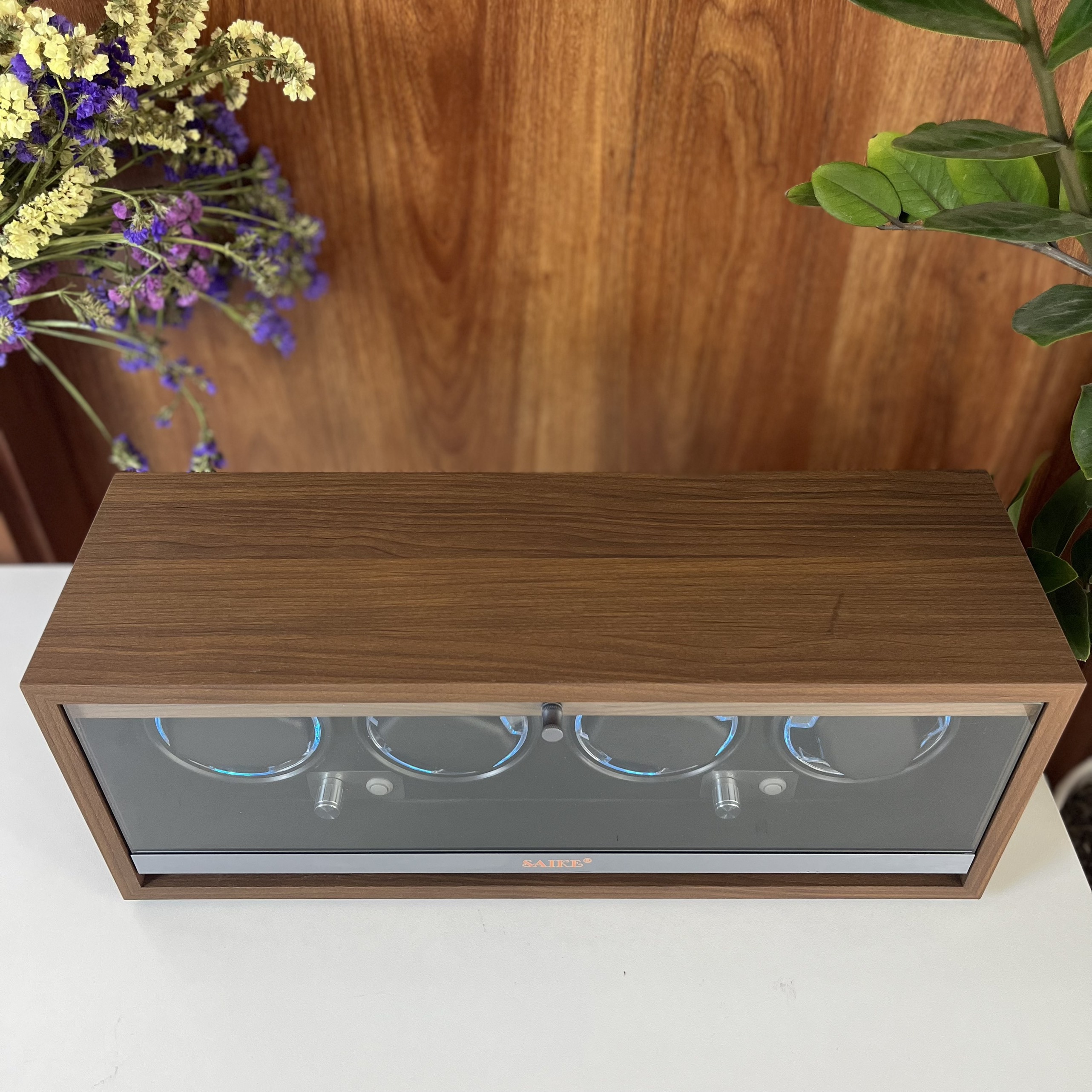 Thông tin sản phẩm: Hộp Xoay Đồng Hồ Cơ 4 Ngăn SAIKE S4000 Vỏ Gỗ - Có Đèn LED - Cao Cấp - Sang Trọng - Chất liệu: thân phôi là gỗ MDF, bảng bên